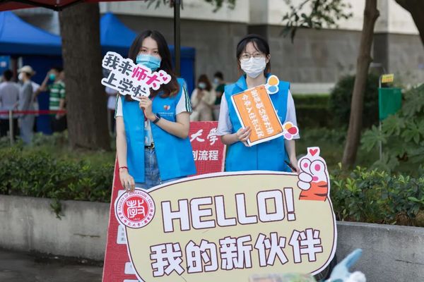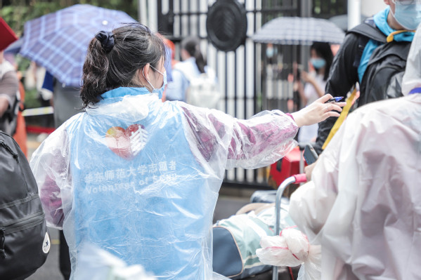According to the requirements of the epidemic prevention and control, parents were not allowed to enter the campuses this year, so they stood at the gate and watched the freshmen walk into the campus with the help of volunteers. 150 student volunteers from higher classes welcomed new ECNUers at the major metro stations of Line 3, 4, 13 and 15.