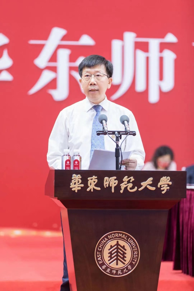 Li Daoji, a teacher representative, professor of the State Key Laboratory of Estuarine and Coastal Research of ECNU (SKLEC) and Dean of the Plastics Circulation and Innovation Research Institute, shared the story of the founder of China’s estuarine and coastal science, Academician Chen Jiyu, who dedicated himself to developing China's estuarine and coastal cause. That generation of scientists who studied and grew up in the dire old China highlighted a profound sense of urgency, the spirit of serving the country, and the feelings of patriotism. He expected that the students should study and undertake the spiritual tradition of the older generation, that is, “seeking truth, being practical, exploring new ways, and striving for accomplishment” while keeping patriotism in their hearts. They should serve the country and undertake the mission of the times with their learnings.