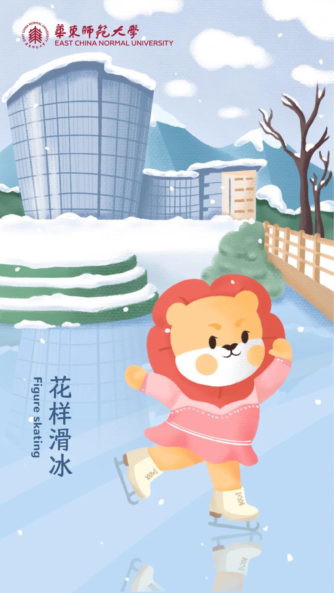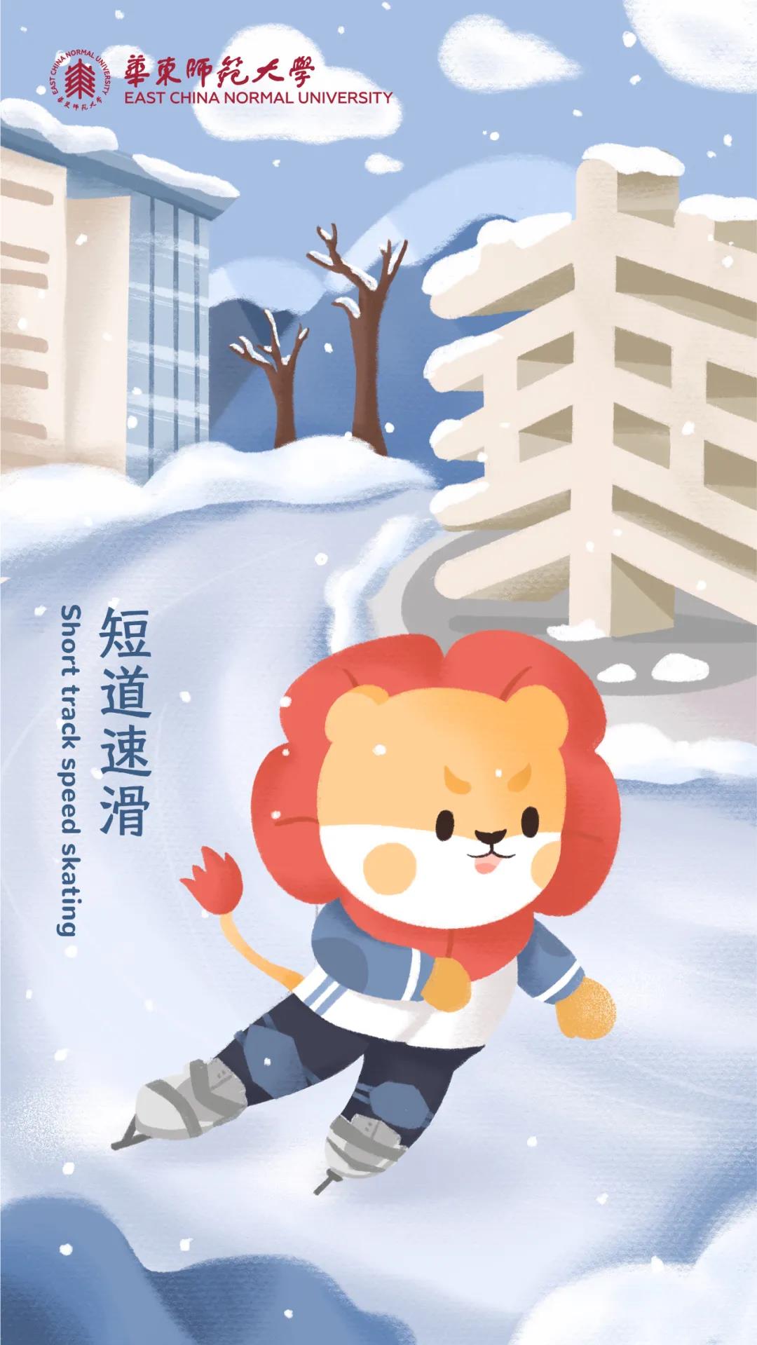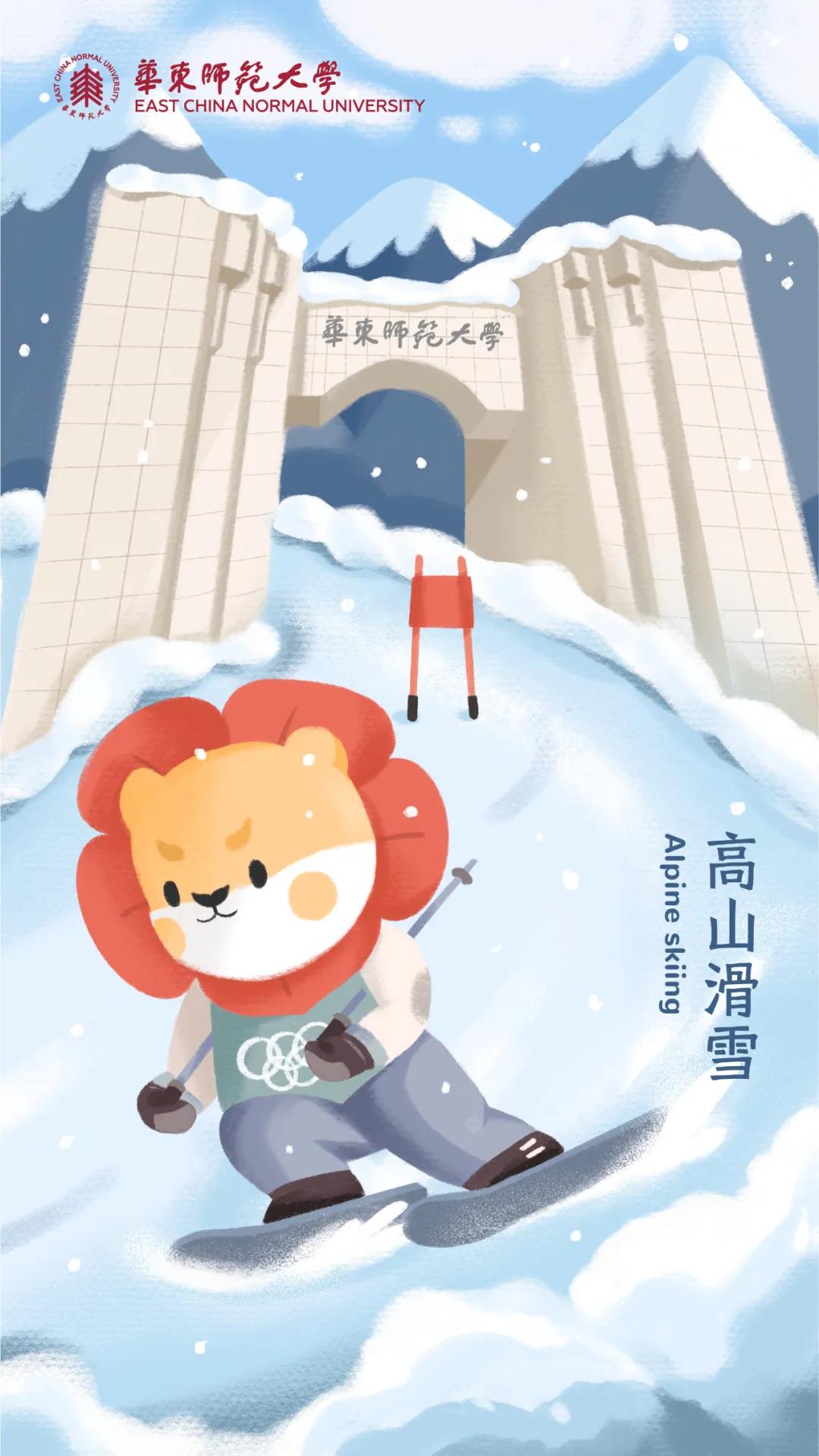 Yu Yanyi and Zhang Yihan of the ECNU School of Design drew several stories with cartoons about the ECNU mascot “Xiaohuashi” — the little mascot has had winter sports experiences during outings on campuses.