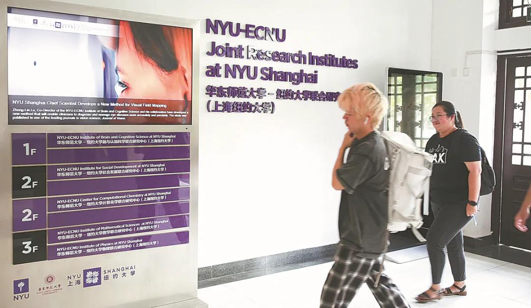▲Students enter the NYU-ECNU Joint Research Institute at NYU Shanghai.