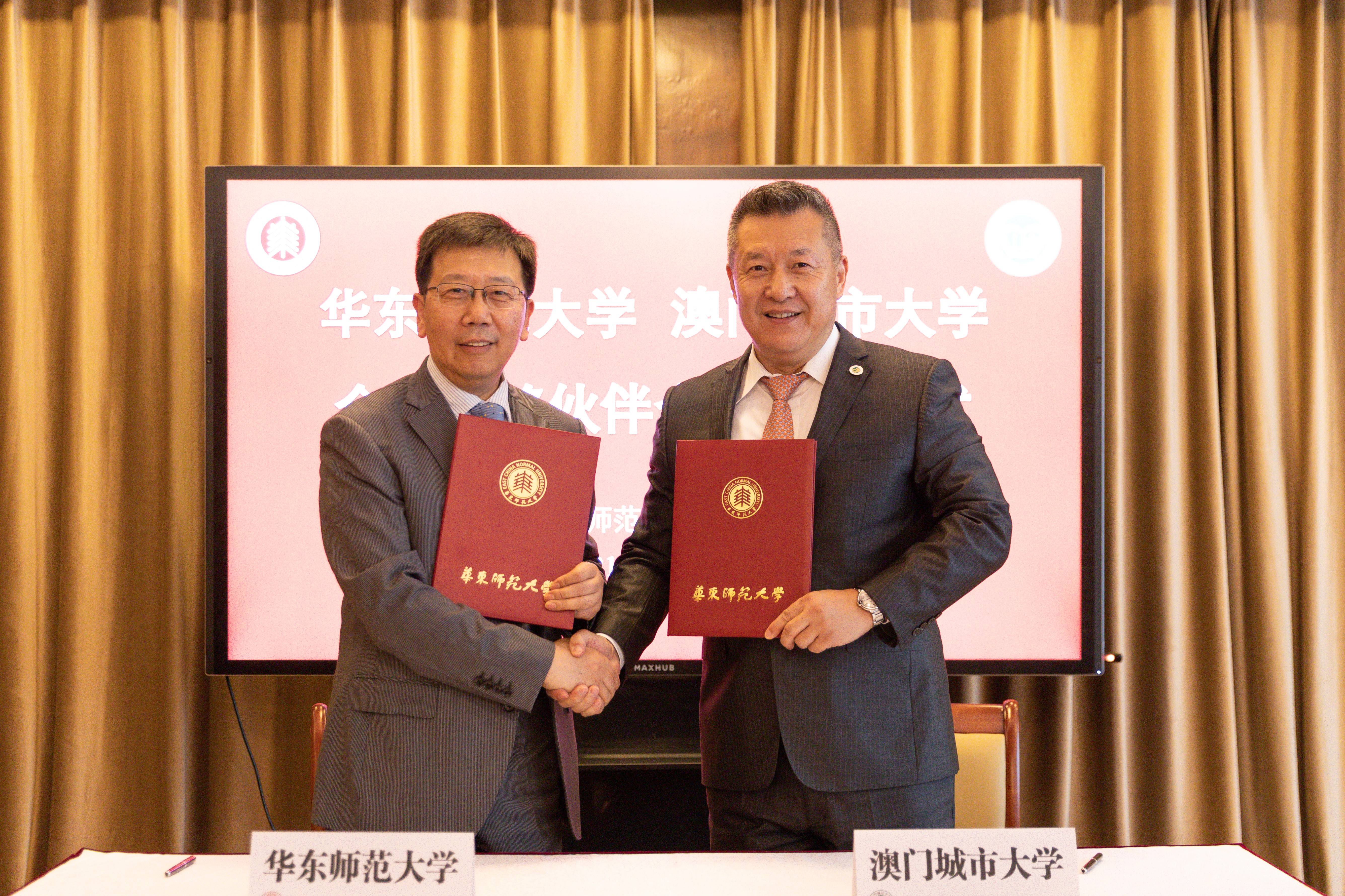 On September 16, 2021, the signing ceremony of a comprehensive strategic partnership between East China Normal University (ECNU) and City University of Macau (CityU) was held in the Yifu Building of ECNU. Qian Xuhong, President of ECNU, and Liu Jun, President of City University of Macau, signed the agreement on behalf of the two universities.