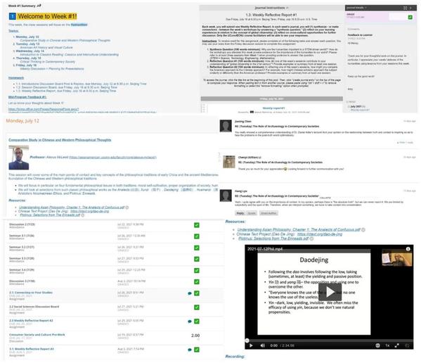 From July 12 to 30, the program was successfully held online. Based on the international cultivation of undergraduate talents specializing in Humanities and Social Sciences at ECNU and supported by the high-end teaching resources in humanities and social sciences at UConn, this program covered lectures, introductions to classics reading, workshops, seminars, group collaborations, teacher-student interactions and other varied forms of communication and learning.