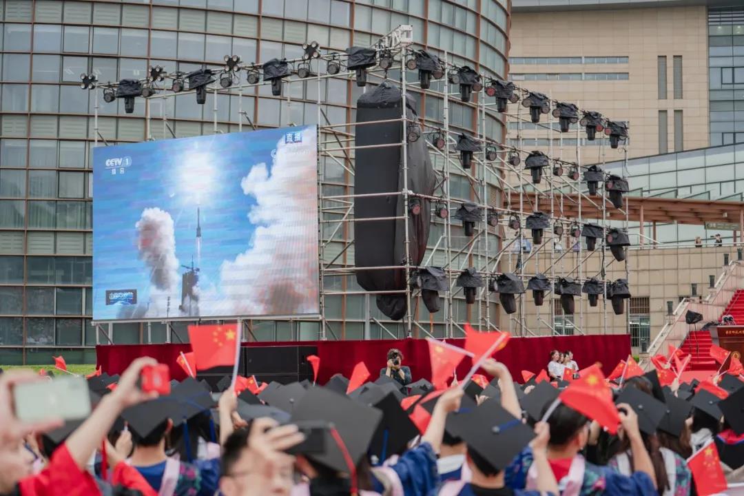 The successful launch of the Shenzhou-12 spacecraft ignited the enthusiasm of the audience, who waved the national flags and cheered. Just as the rocket carries the hope of Chinese astronauts into space, so the graduates will embrace a greater future. Therefore, the class of 2021 earned the nickname: “Class of the Rocket”.