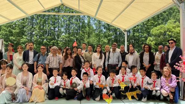 More than 30 consular officials from 18 countries in Shanghai, including those of Russia, Germany, Finland, Hungary, Mexico, Pakistan and Poland, gathered by the Liwa River of East China Normal University (ECNU) on May 22 for a wonderful immersive experience tour of the Song Dynasty (960-1279) culture.