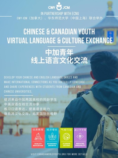 However, both ECNU and CWY feel the collaboration and exchange should not be suspended. With joint efforts and supports from many sources, the new Chinese & Canadian Youth Virtual Language and Cultural Exchange is launched to build a bridge between the youth of two countries.