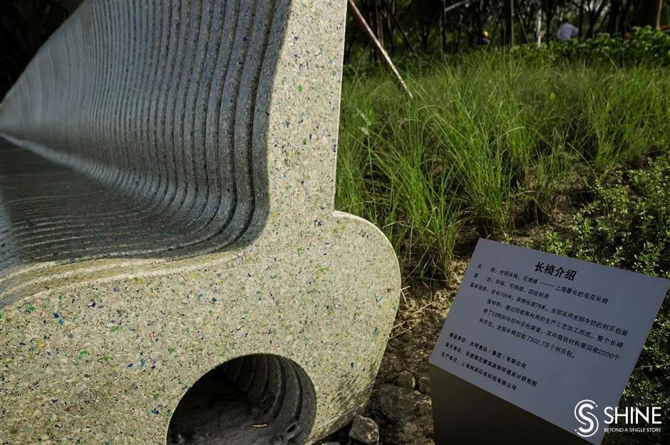 The Expo follows the island’s strategy of low-carbon and sustainable development. There are many environmentally friendly designs worth seeing in the Expo. For example, about 5 million recycled milk cartons were used to make eco-friendly benches.Designed by Chinese architectural firm Arcplus Group, the benches were made of recycled Tetra Pak milk cartons, crushed and compressed into a durable material that is sun- and waterproof.