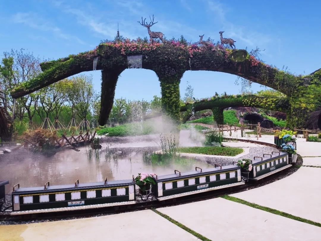 The Expo offers tourists a beautiful train ride. In the Jilin Garden, which covers an area of 2,000 square meters, tourists can take a small train to enjoy the sea of flowers.