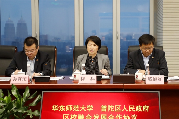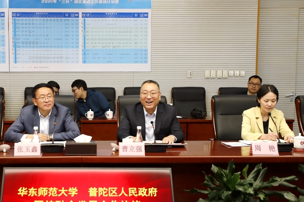 Cao Liqiang pointed out that ECNU and the Putuo district in which it is rooted have developed in an integrated manner, laying a solid foundation for in-depth cooperation. In recent years, they have earnestly implemented the strategic cooperation, explored key areas of development, and accelerated industry-university-research collaborative innovation. As a result, a number of leading, strategic projects have been launched, benefitting ECNUers and people of the Putuo district.