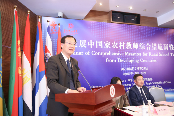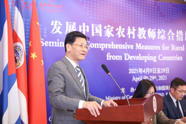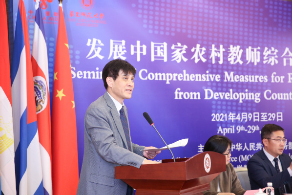 The online opening ceremony for the “Seminar of Comprehensive Measures for Rural School Teachers from Developing Countries” was held on April 9, 2021. Sponsored by the Ministry of Commerce of the People’s Republic of China (PRC) and organized by the International Center for Teacher Education of the Faculty of Education of East China Normal University (ECNU), the event was held successfully at the Zhongbei Campus of ECNU in Shanghai, China.