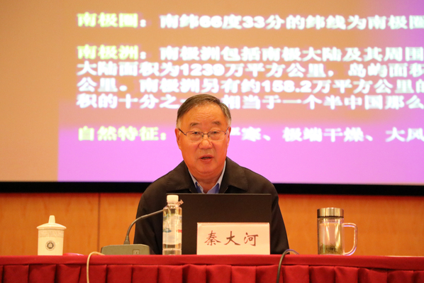 Qin Dahe sharing his experience of scientific expedition in Antarctica
