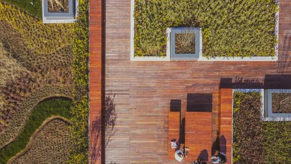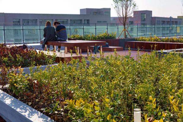 The interactive and educational sky garden allows ECNUers to get close to nature and fosters their sense of environmental sustainability. They can also relax or learn in the seating area.