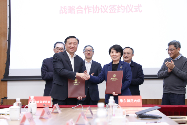 The strategic cooperation agreement was signed between Shanghai Municipal Commission of Commerce and ECNU.