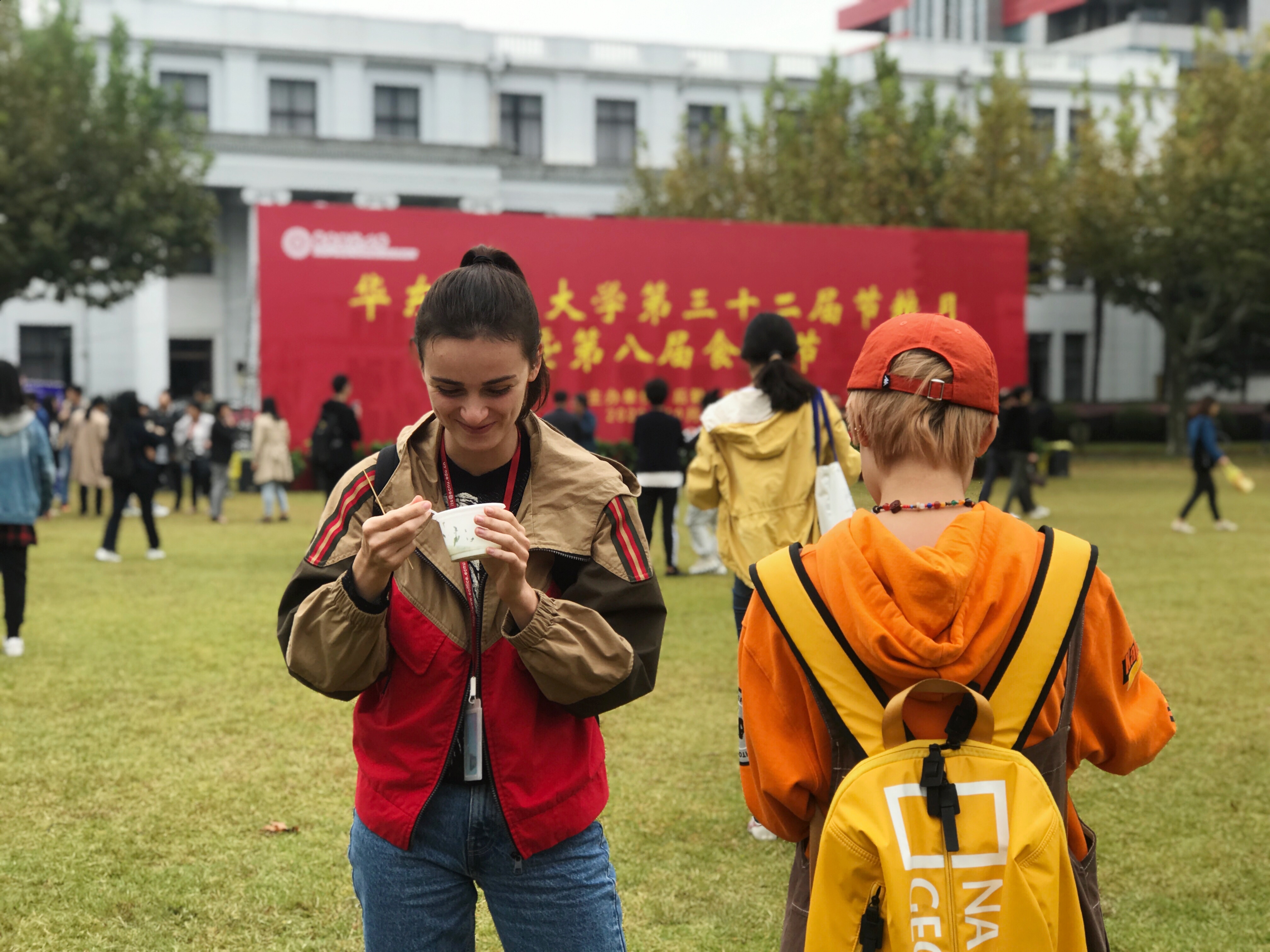To contribute to the university’s effort in poverty alleviation, the festival also displayed specialties and agricultural produce from less developed provinces and regions, such as Xundian of Yunnan, Guoluo of Qinghai, Kashi of Xinjiang and Zunyi of Guizhou. The food was offered for free to students and teachers, who could then buy produce from these areas to contribute to poverty relief efforts.