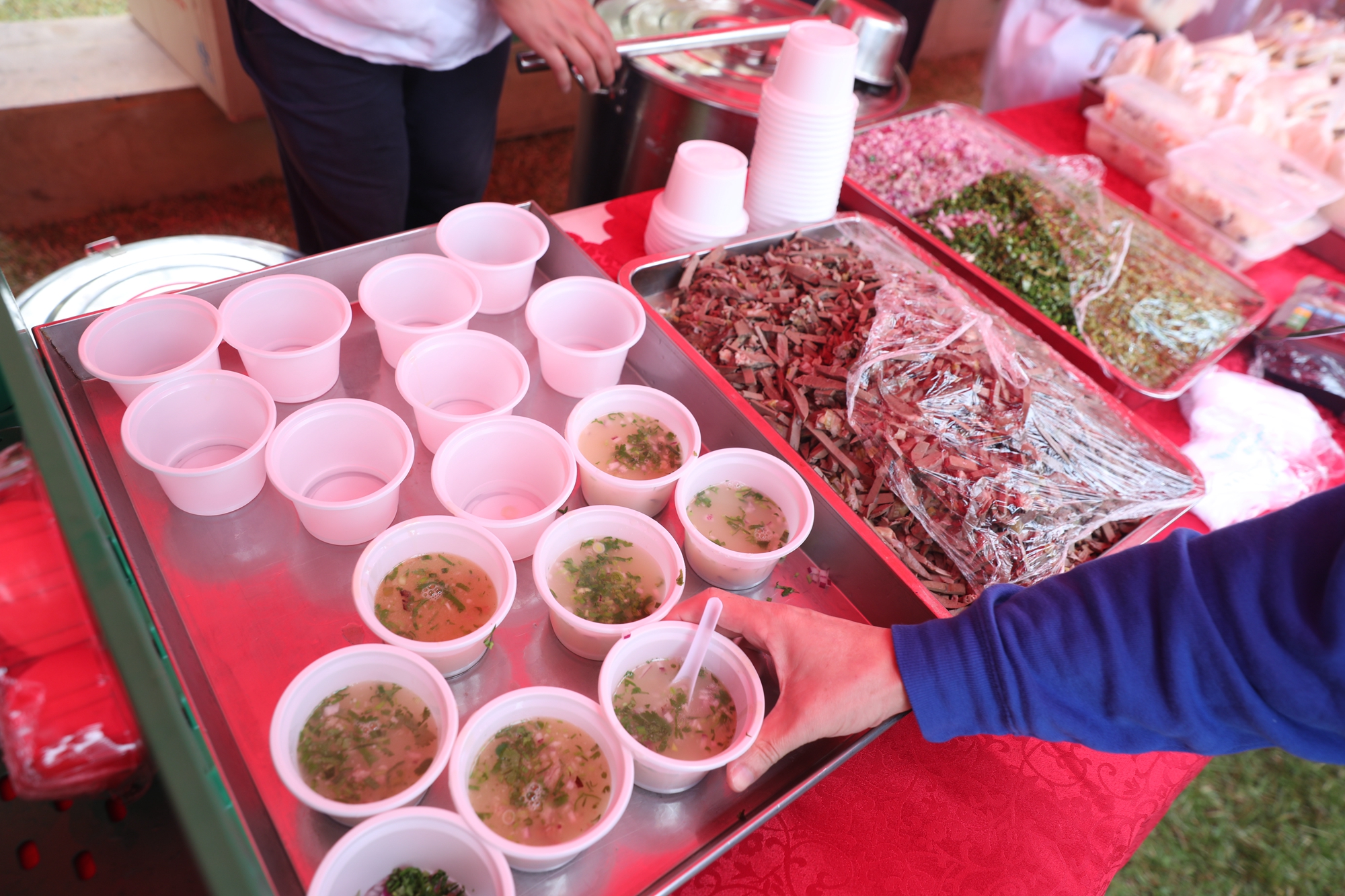 Free samples of different dishes and disserts were handed out to visitors at the festival and were warmly received, including Belgium-made chocolate, eggrolls, chocolate cream puffs, northern Jiangsu meat balls, Cantonese char shiu (or roast pork), crispy durian pastry, fruits, etc.