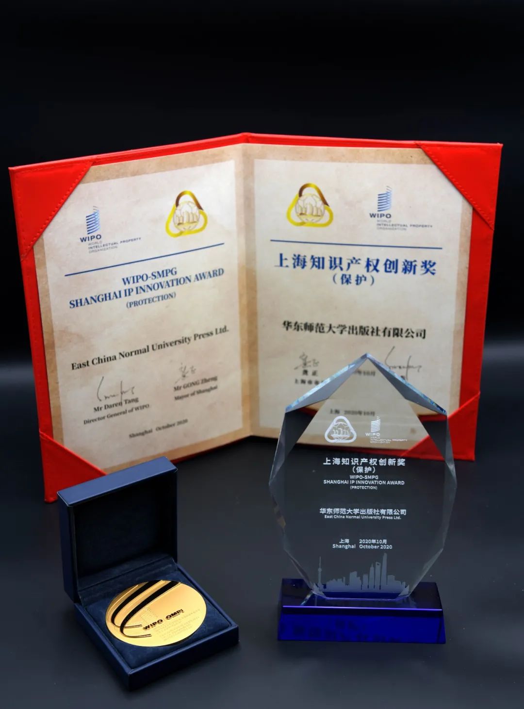 The 17th Shanghai International Forum on Intellectual Property, co-sponsored by the State Intellectual Property Office of China, the World Intellectual Property Organization and Shanghai Municipal People’s Government and undertaken by Shanghai Municipal Intellectual Property Office, was launched in Shanghai on October 20. At the opening ceremony was also held the awarding ceremony of the 2nd Shanghai Intellectual Property Innovation Award.Seven institutions including East China Normal University Press won the award. Deng Hongsen, Director-General of the World Intellectual Property Organization, delivered a congratulatory speech via video, Shen Changyu, Director of the State Intellectual Property Office of China, and Chen Qun, Vice Mayor of Shanghai, jointly presented awards to the winners.