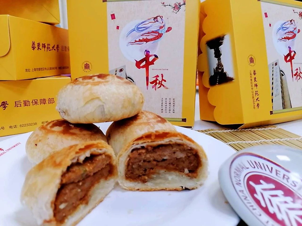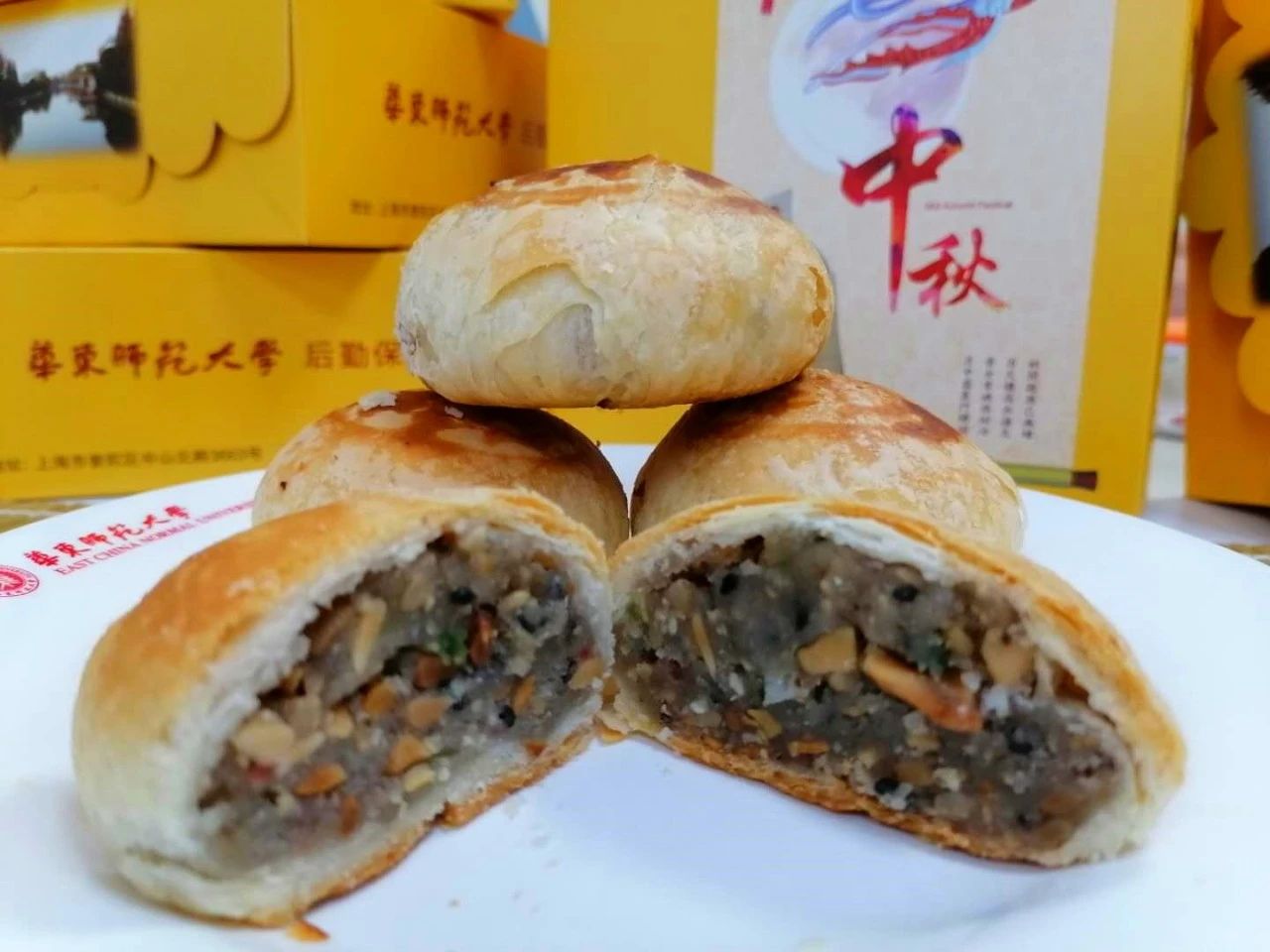 During the Mid-autumn Festival, ECNU prepares tasty mooncakes of various flavors for its teachers and students. This year, apart from the Cantonese-style and Suzhou-style mooncakes, ECNU has also created a new type of mooncake with white and purple crust, pleasing to the eye and delicious.