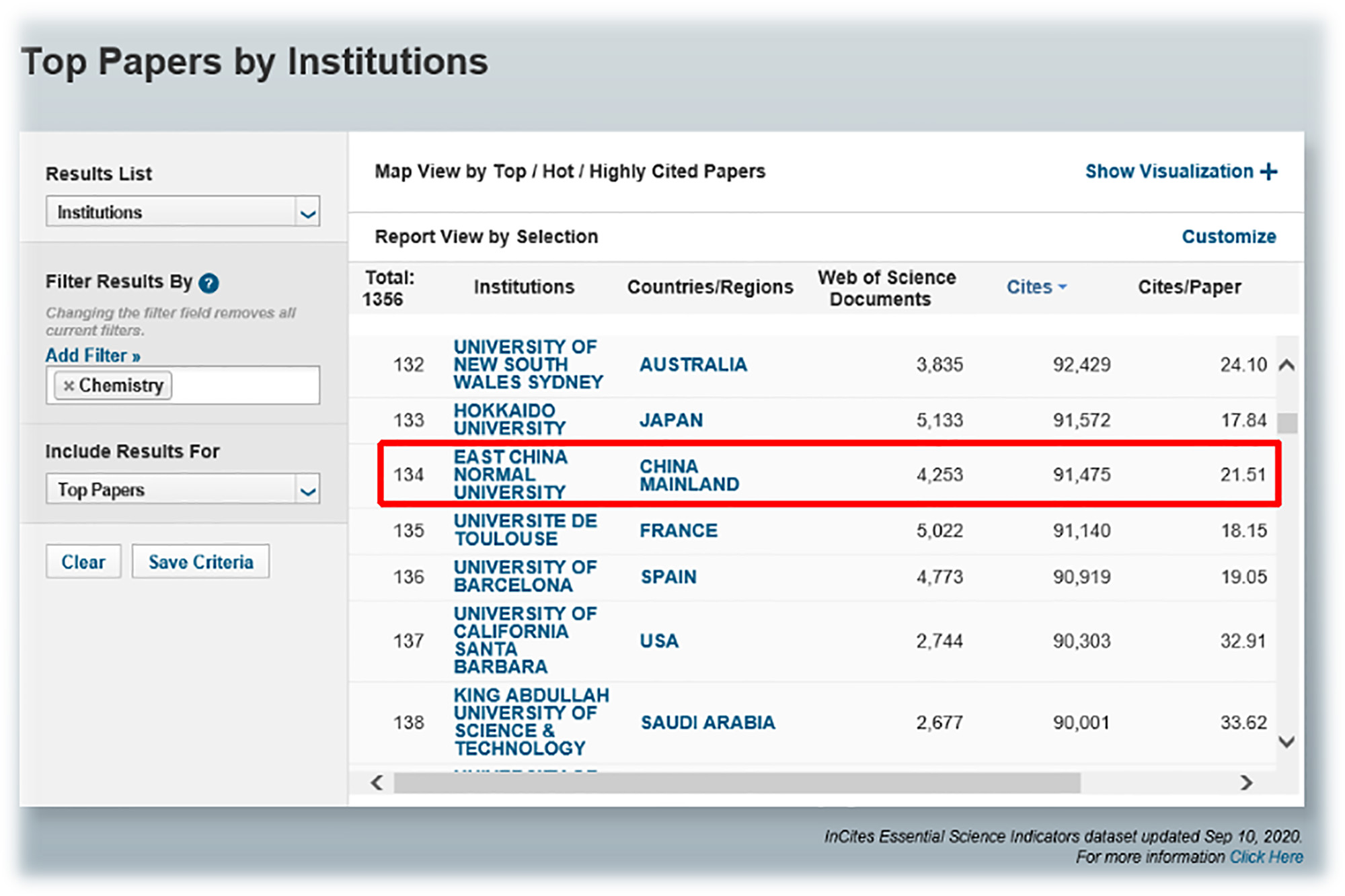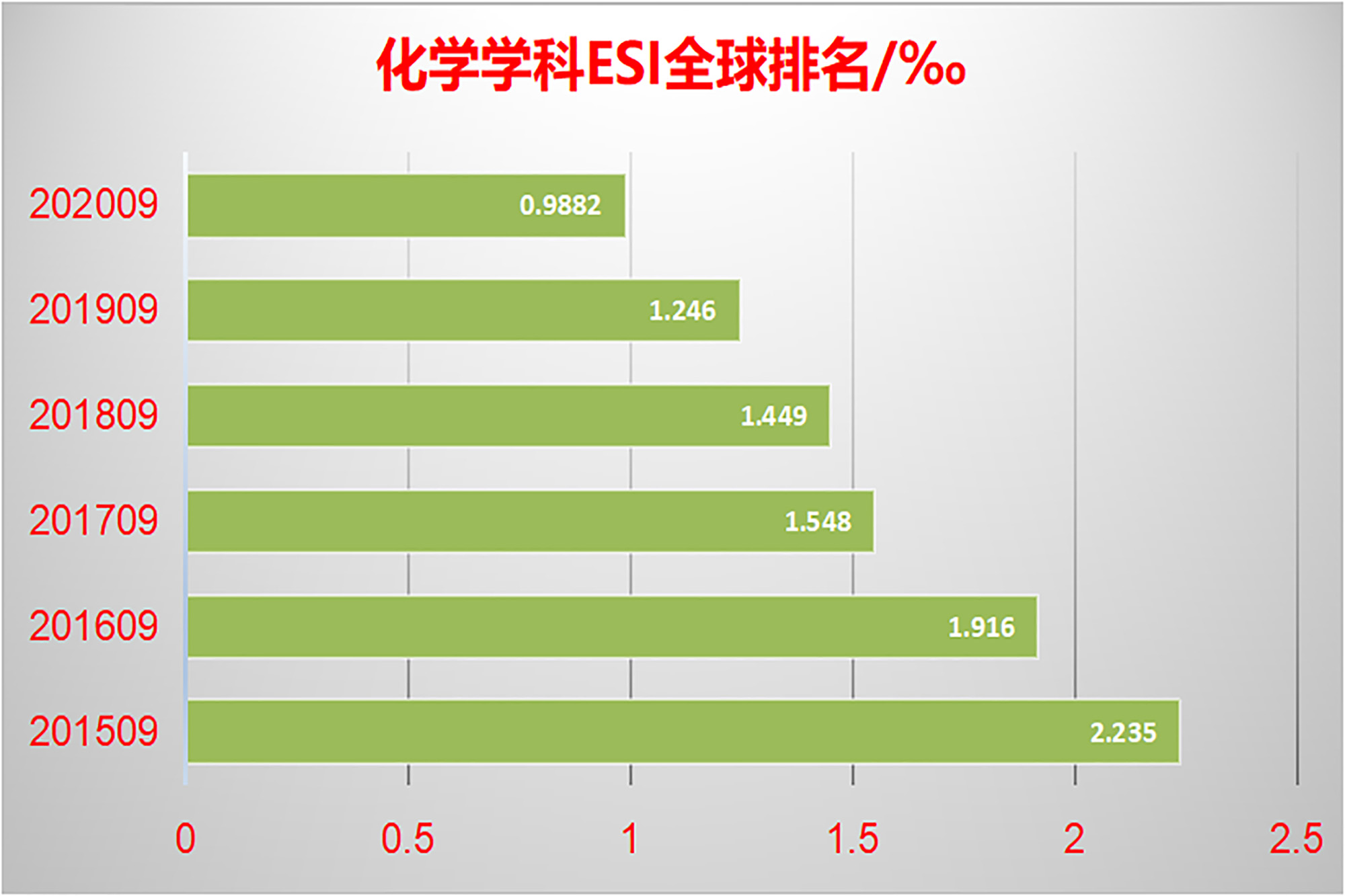 Changes in ESI Global Ranking of the Discipline of Chemistry of ECNU in the Past Five Years