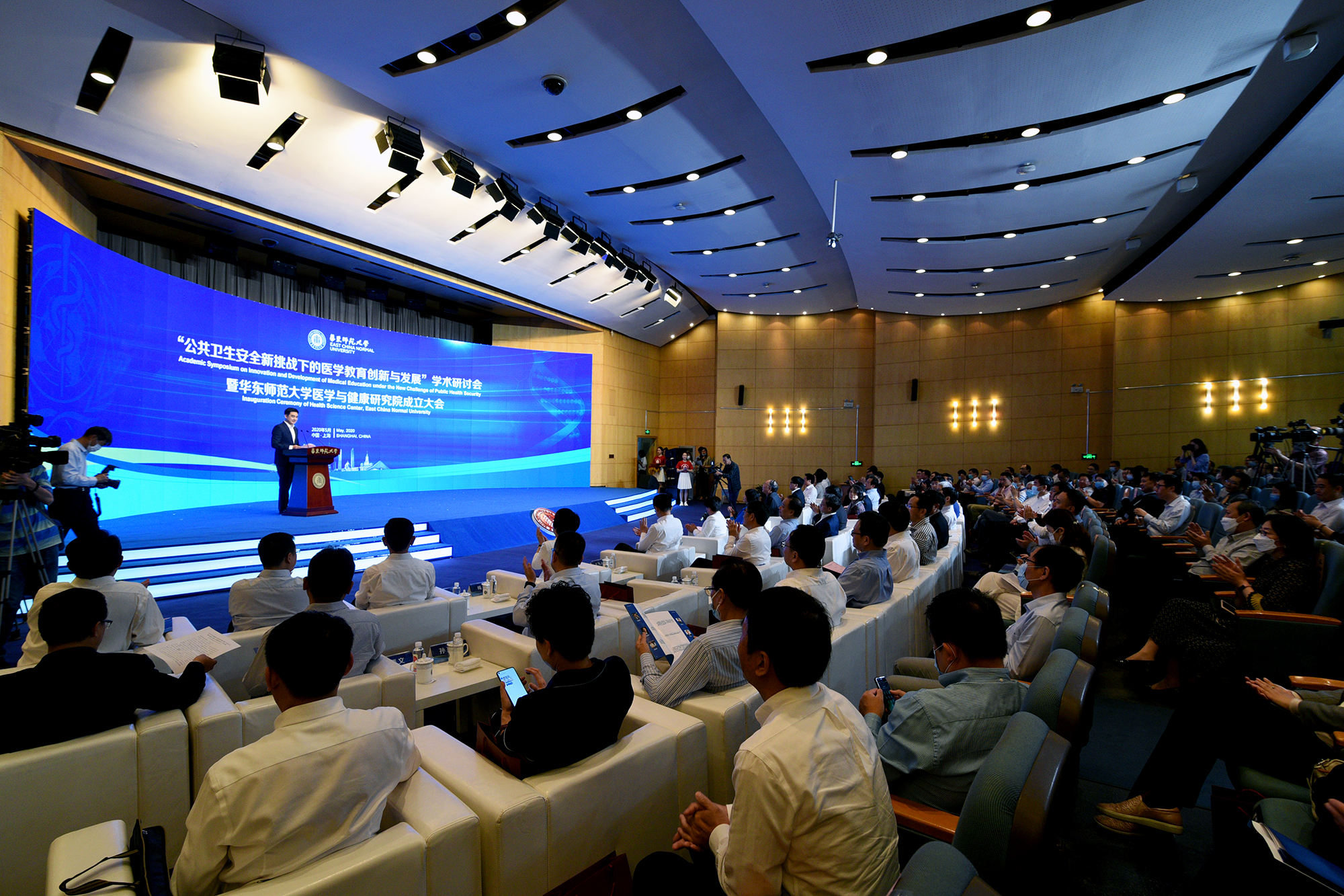 To expand its advantage in education to the field of health and cultivate top-notch medical and health personnel, ECNU hosted the Inauguration Ceremony of the Health Science Center and the Academic Symposium on Innovation and Development of Medical Education under the New Challenge of Public Health Security on May 23 on its Zhongbei Campus. Guan Youfei, an internationally renowned expert in kidney, metabolic, and cardiovascular diseases, serves as the center’s honorary director.
