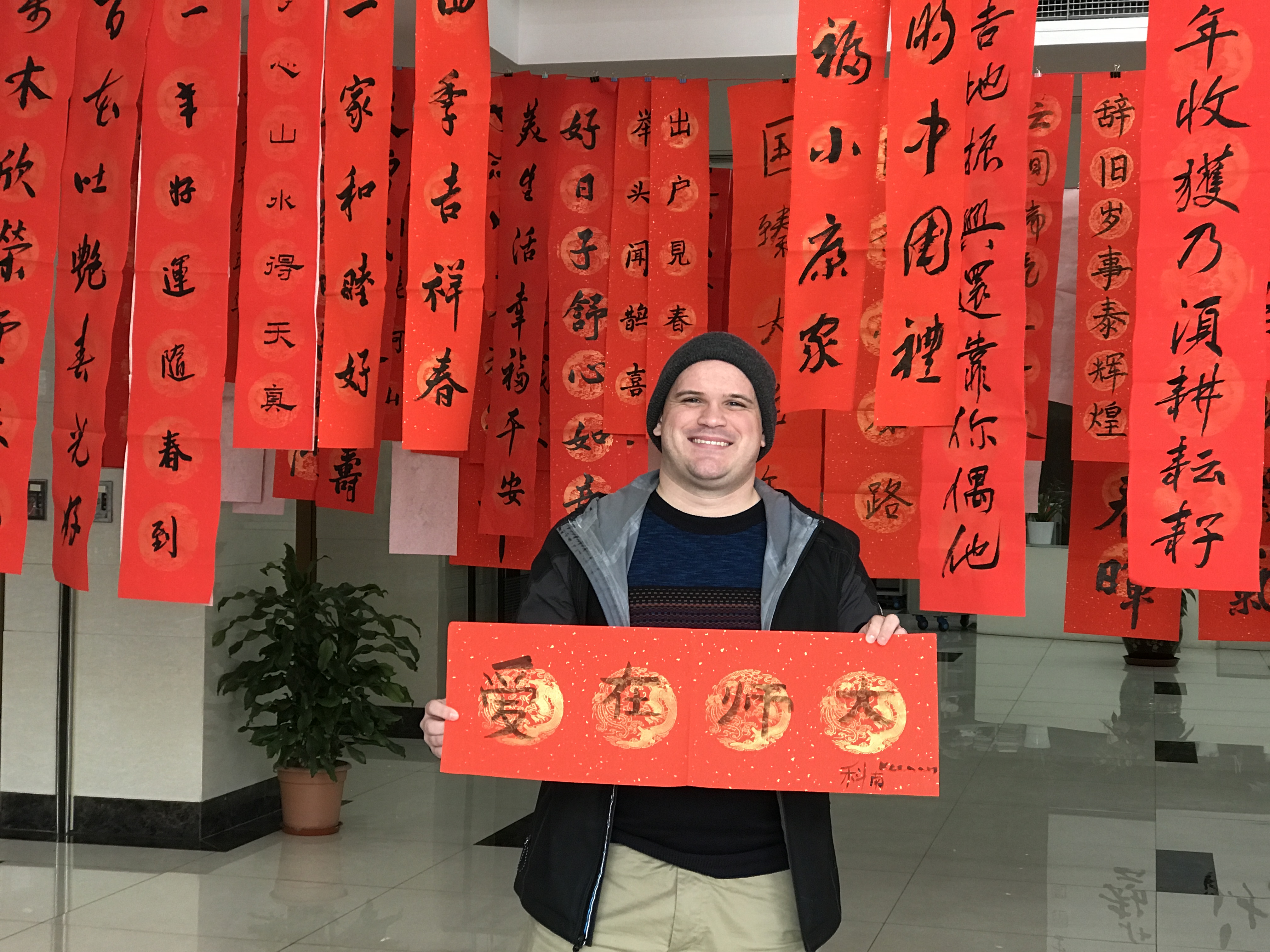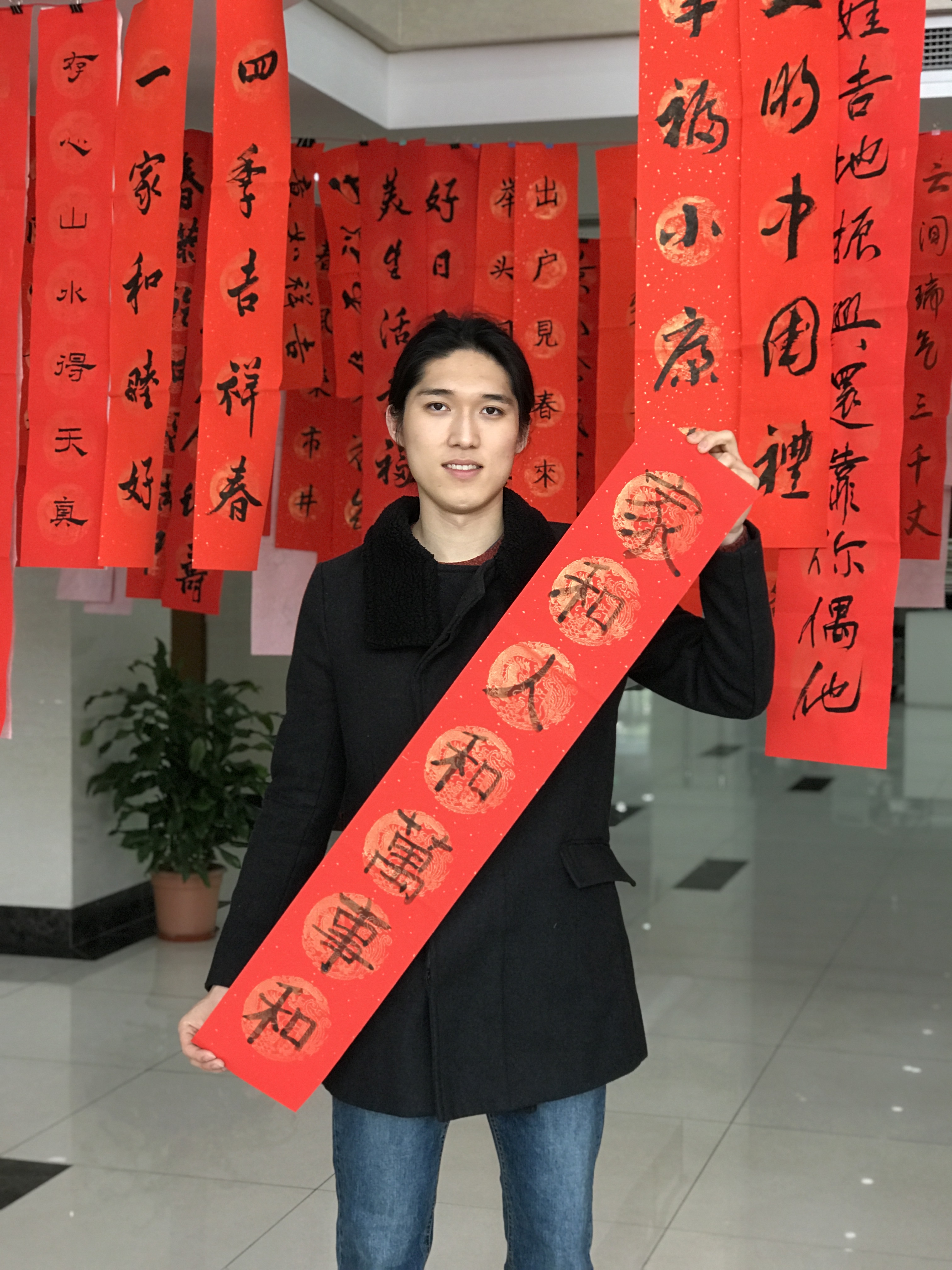 Keenan Buchanan, an ECNU student from the U.S. majoring in International Relations said, “I want to try to practice calligraphy and show my support to ECNU and my appreciation to Chinese language. I think Chinese language is beautiful. It expresses not only words in meaning in writing but also feelings, you can express yourself by the way you write something. Besides I am always impressed by the traditional values that China has, for example the respect of family.”