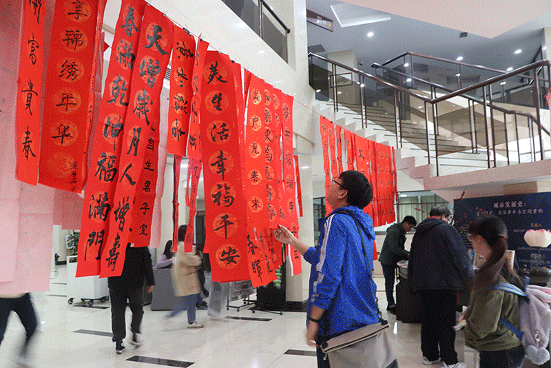 From December 31, 2019 to January 10, 2020, calligraphy enthusiasts came to the libraries and write the couplets, ask the calligraphers for a Fu (a Chinese character meaning blessings or happiness), or hang their couplets to show their delight for the festival and make new year wishes. Writing and passing couplets is a tradition for Chinese people when they celebrate the arrival of the Spring Festival, which falls on January 25th this year.