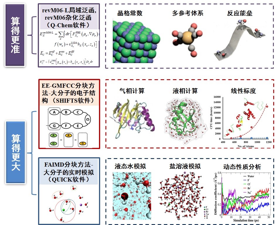 He Xiao also proposed a new high-precision regional density functional revM06-L and MN15-L (ESI top 1% highly cited paper), which can be applied to both chemical and condensed matter physics systems, and the global hybrid functional revM06 and MN15 (ESI top 1% highly cited paper) applicable to accurate calculation of molecular systems in main group elements and transition metals. A finding that has been widely used by many research groups, it ultimately provides a highly efficient and accurate theoretical new tool for quantitatively studying the novel quantum properties of complex macromolecular systems, the quantum mechanism of intermolecular interaction kinetics in aqueous solutions, and the precise prediction of the properties of macromolecules and material systems.