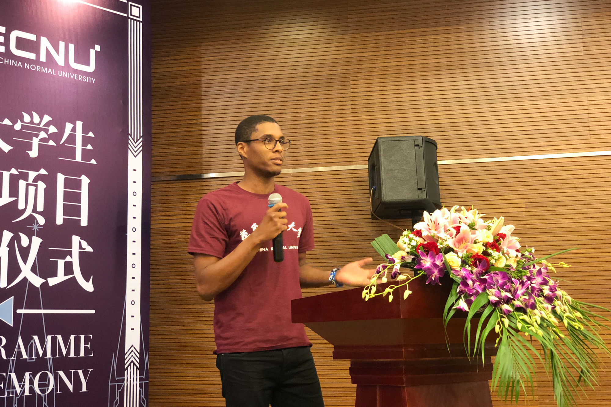 Wang Gang, deputy director of the ECNU's International Education Center gives a speech.