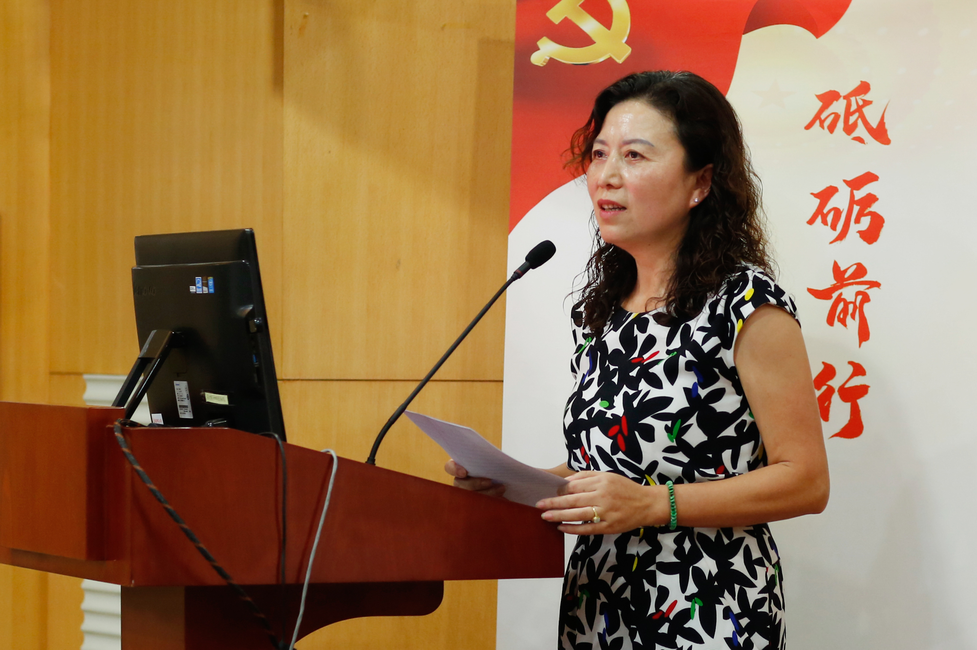 Head of the personnel department Cheng Jing reads the name list of leaders for the new school.
