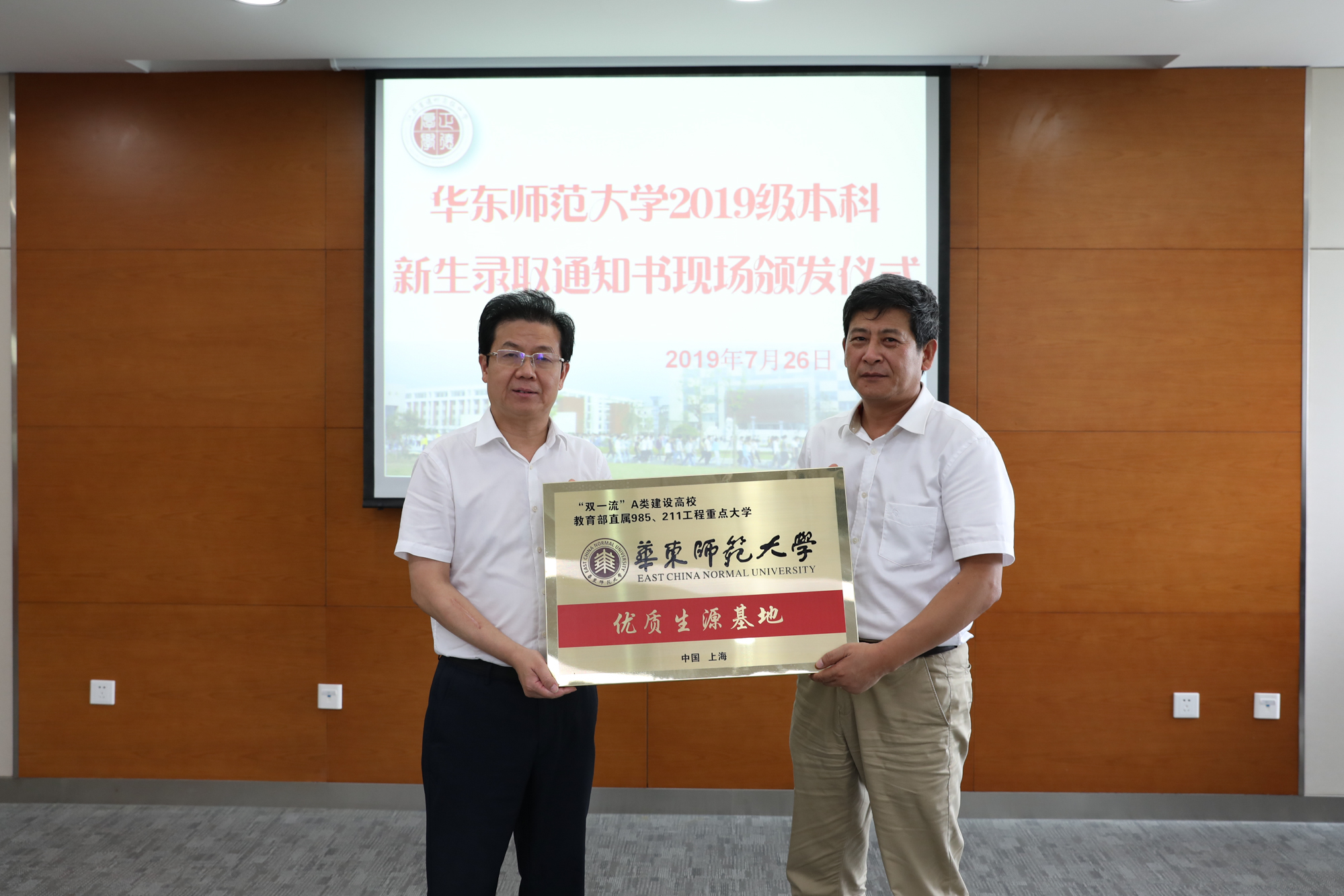 Tongzhou Senior High School in Jiangsu Province was officially recognized by ECNU as a school with high-quality students when Pu Xiaolong, director of ECNU Admission Office, presented a plaque to Principal Ji Zhongping at an award ceremony on July 26.