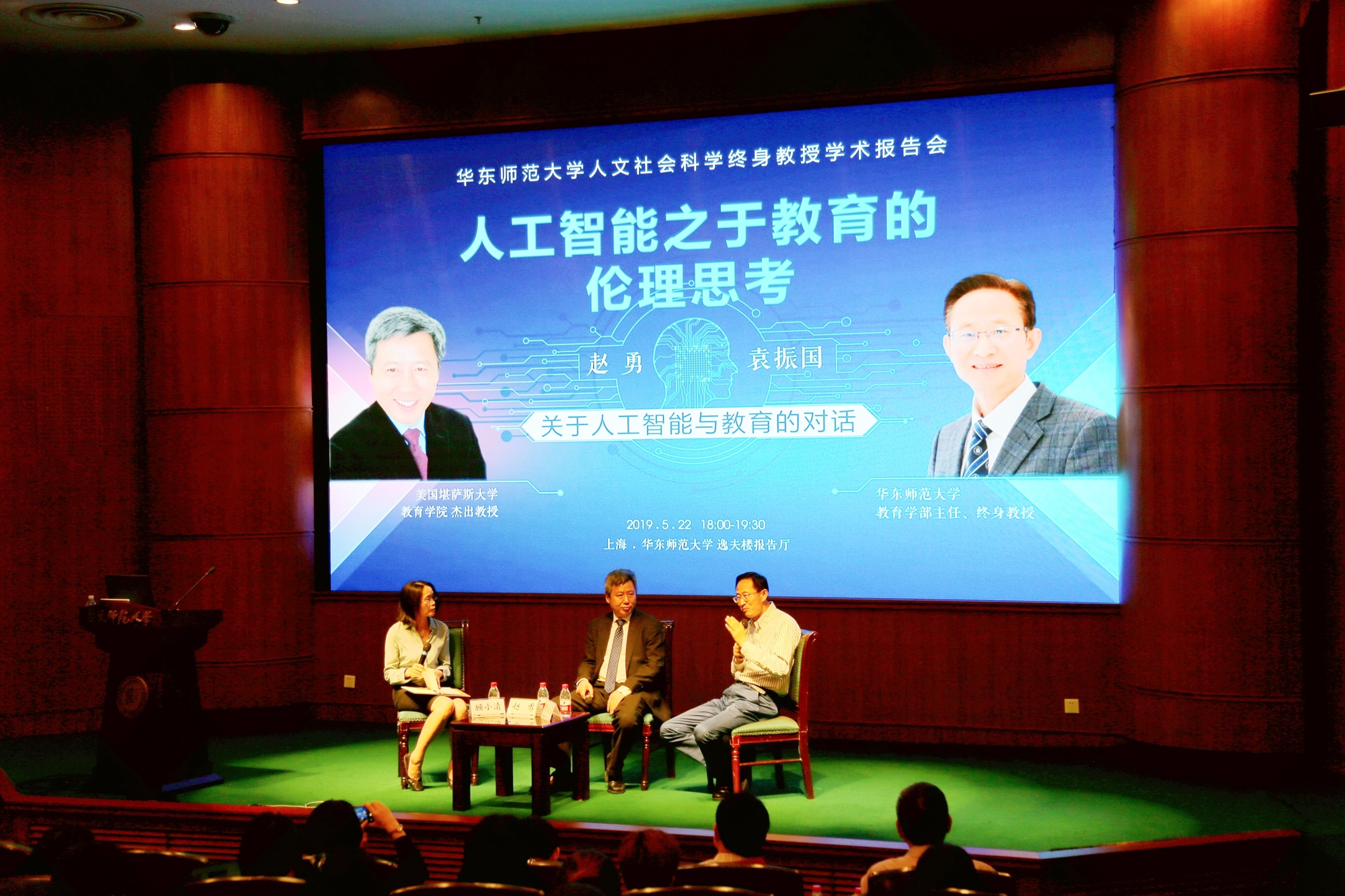 Prof. Yuan Zhenguo, a tenured ECNU professor, head of the Faculty of Education, vice chairman of the Chinese Society of Education, and head of the Brain Sciences and Education Innovation Research Institute; and Zhao Yong, a distinguished professor in the School of Education at the University of Kansas and Victoria University, and Global Chair Professor of Bath University in the U.K., delivered lectures on the subject: Thoughts on AI ethics in education.
