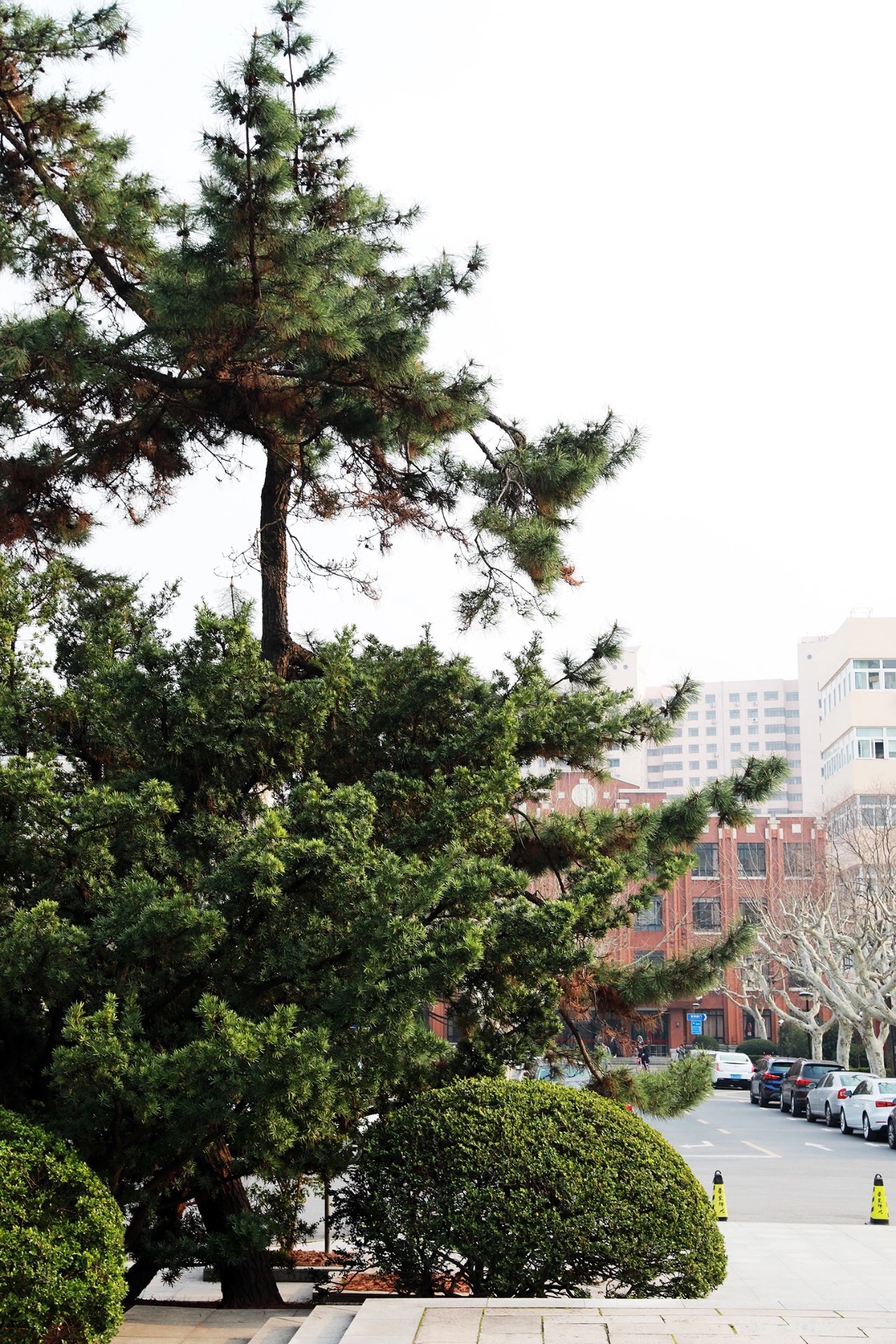 The square in front of the No. 3 Hall is overlooked by the four podocarpus macrophylla trees portraying its solemn and respectful beauty to onlookers and ECNUers. Numbered 1606, 1607, 1608 and 1609, the trees were inscribed on Shanghai's second-class protection list of ancient and famous trees in 2004. They currently stand at approximately 115 years old.