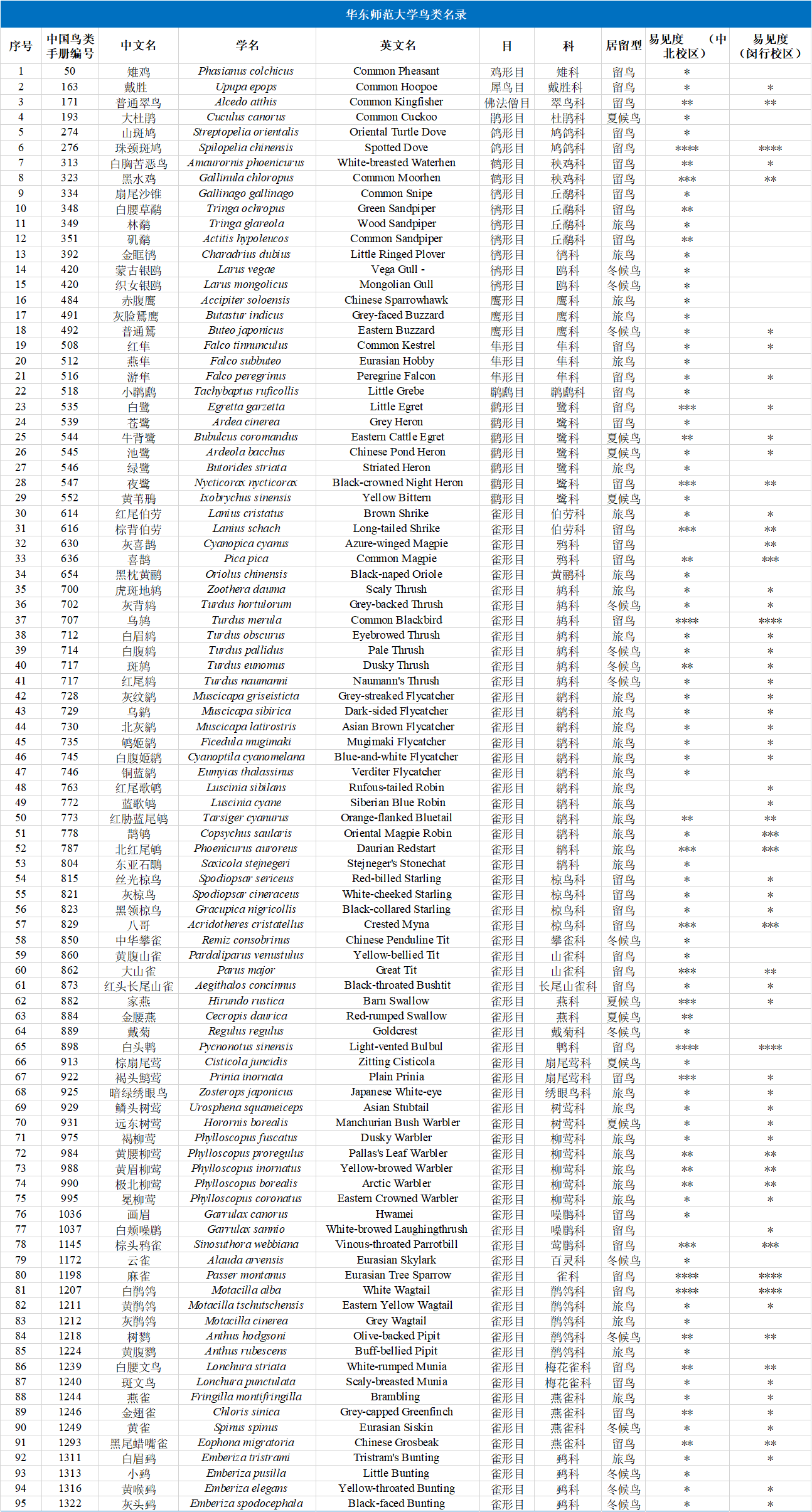 In the early 1990s, ECNU took the lead among other universities in Shanghai by offering bird watching courses, which changed the traditional way of observing such specimens and taught students to recognize birds through natural observation. According to a campus biodiversity survey, the number of birds on the campus of ECNU is significantly higher than that in surrounding communities, which must be related to the high rate of green coverage and ecological construction in our school, said Tang Sixian.
