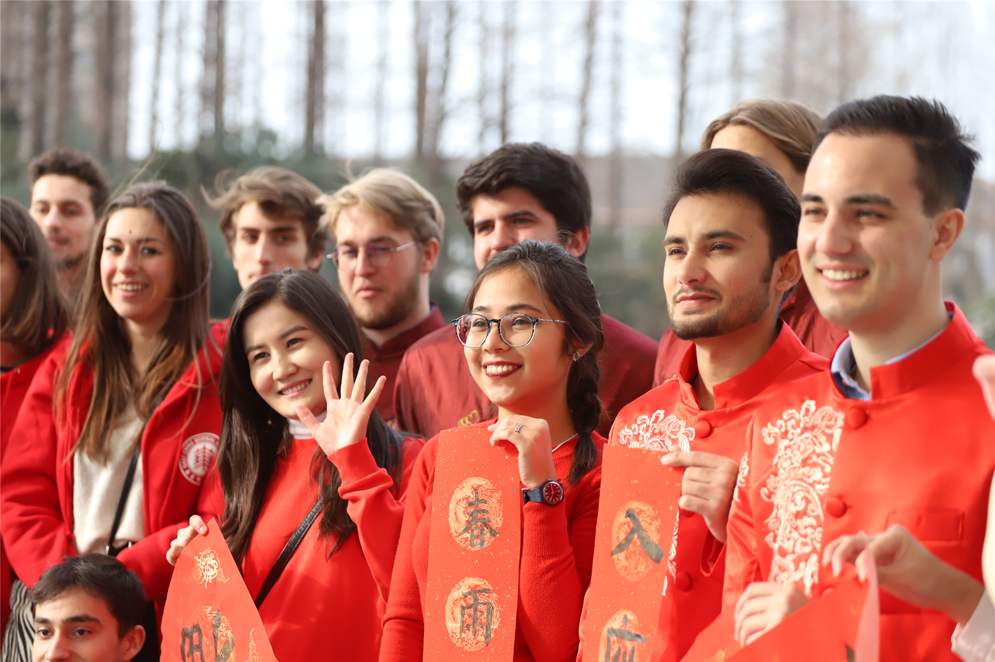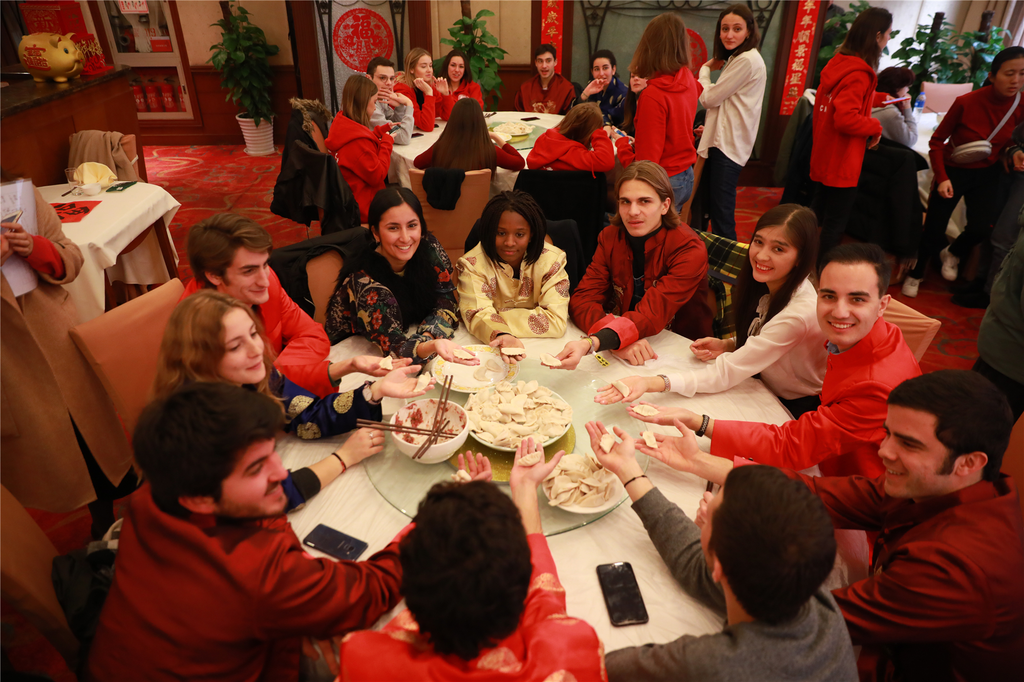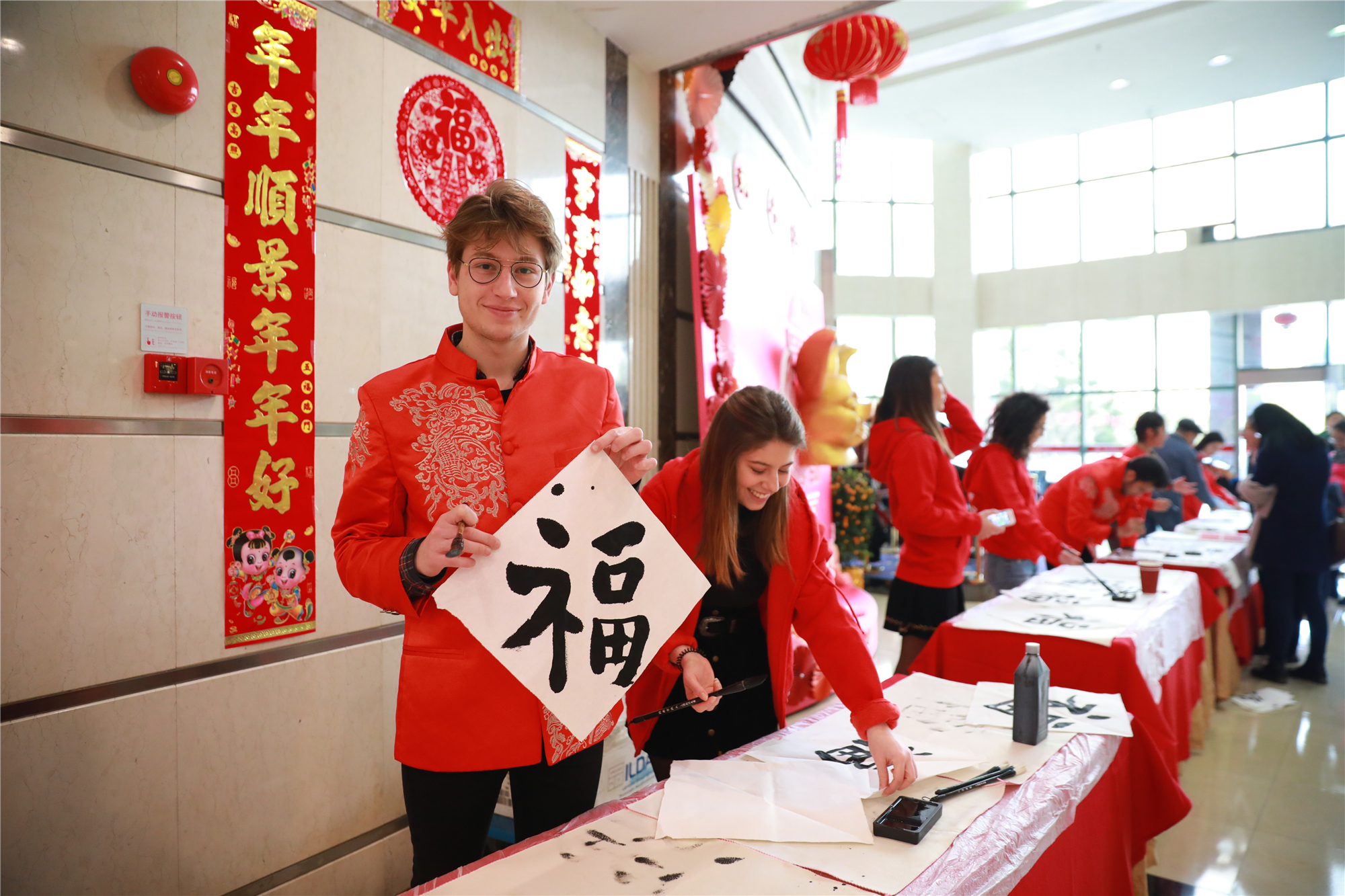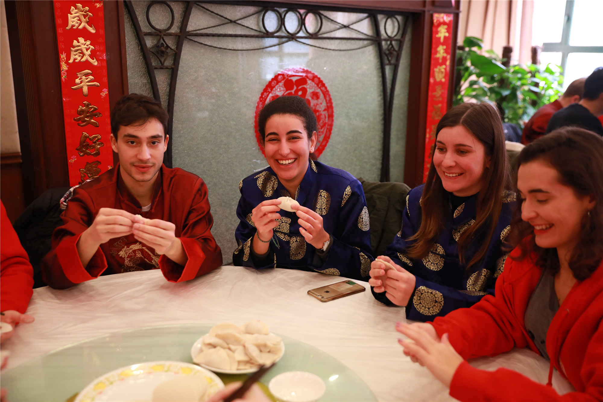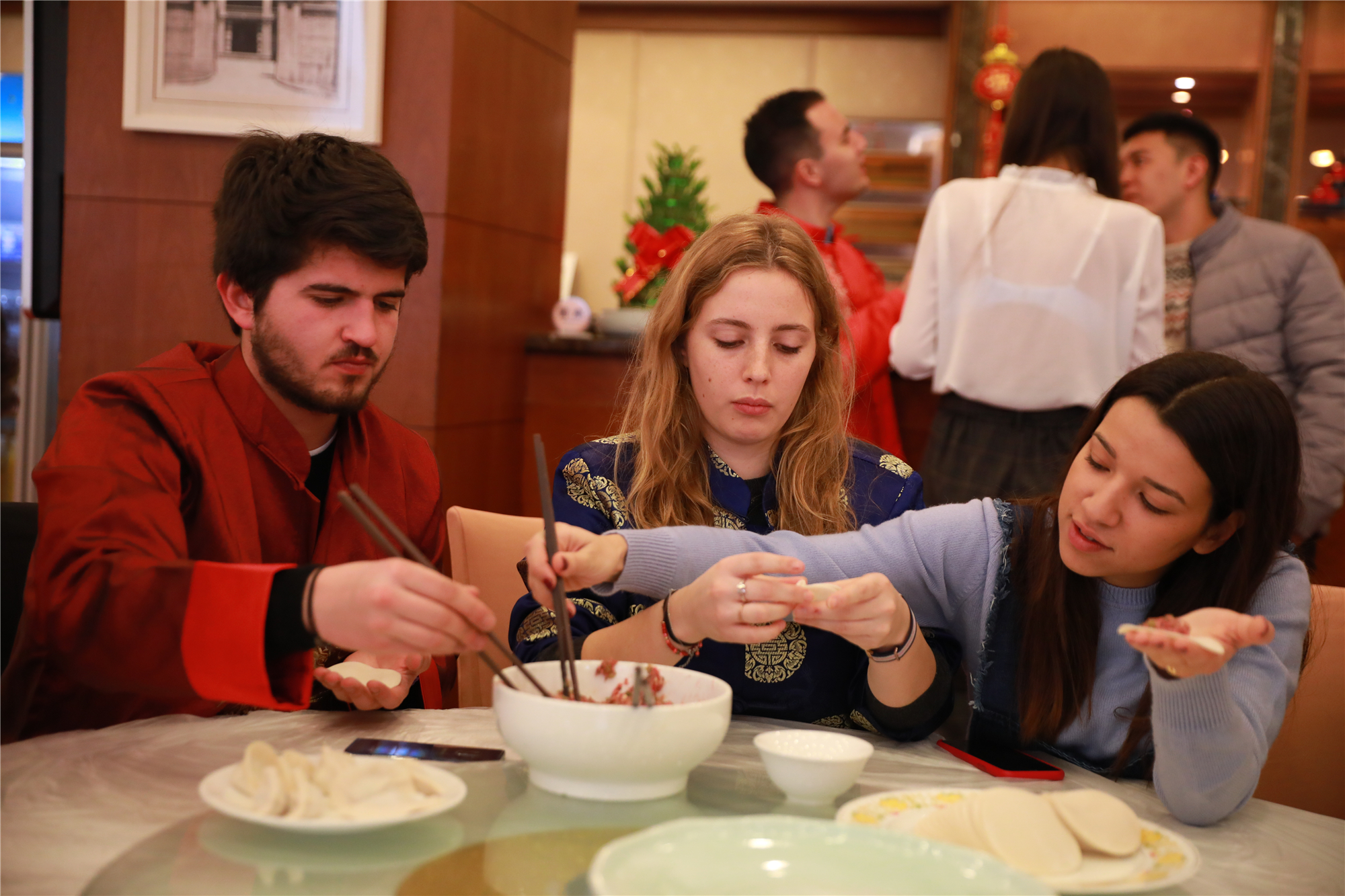 Foreign students wrote spring couplets, made dumplings and held a big dinner on campus.