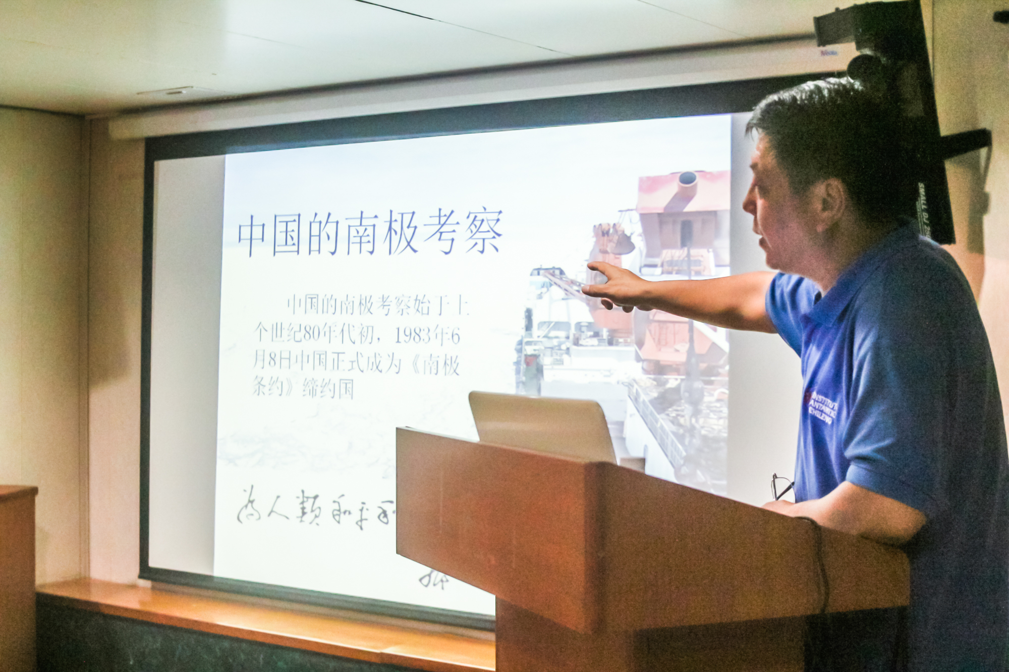 On the first day, research scientist on glacier studies Li Yuanshen shared his experiences from his recent trip to Antarctica, where he introduced the latest findings of China's Antarctic field research team. Researcher Li answered questions from the students about his recent visit to the Xue Long vessel.
