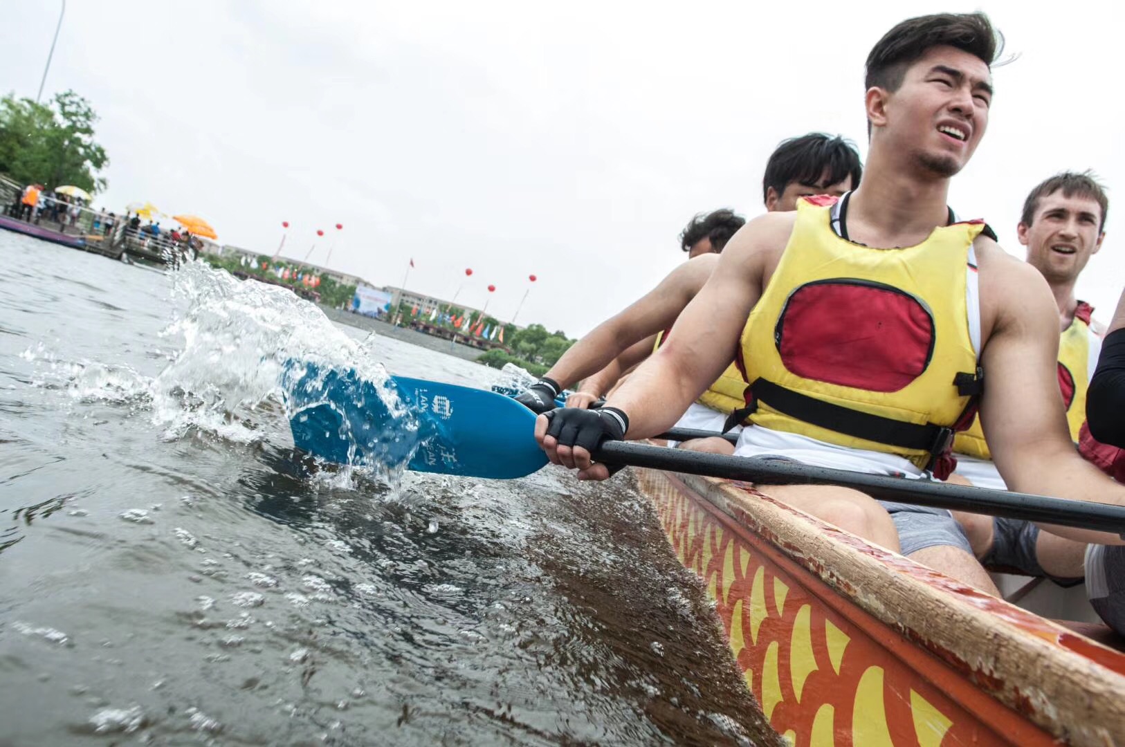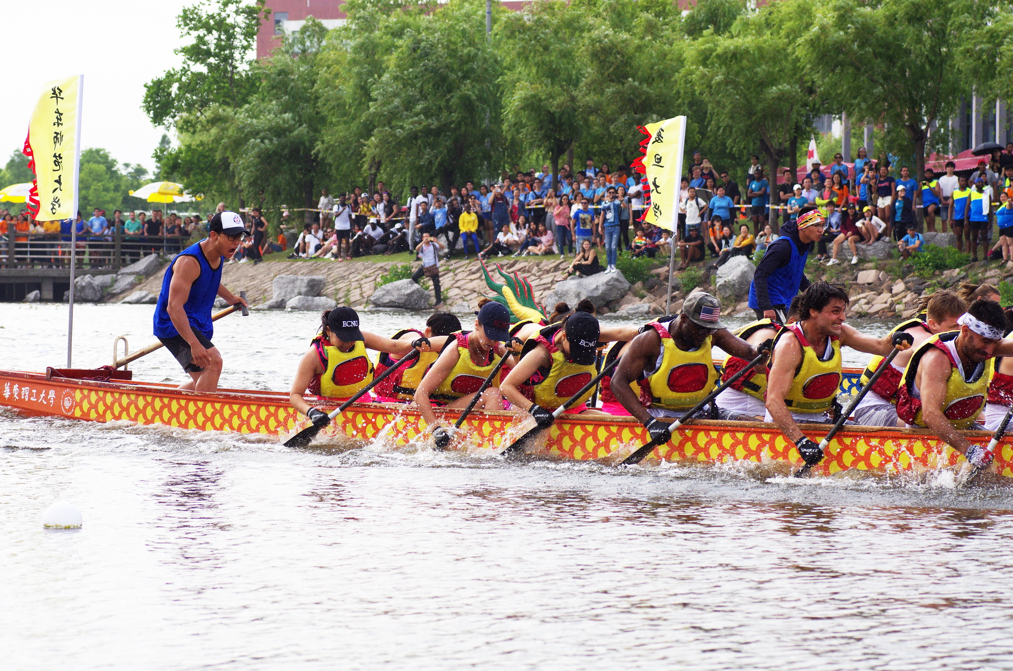 9 June, ECNU’s international dragon boat team were crowned champions of the 11th Shanghai University International Students Dragon Boat Race making it the third year in a row that ECNU has captured the title. Amongst the backdrop of a competitive environment between universities and Chinese holiday fervor, the event was held in the Fengxian campus of East China University of Science and Technology.