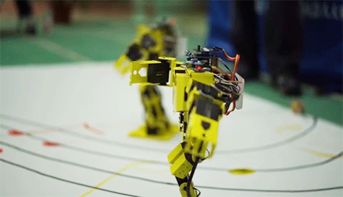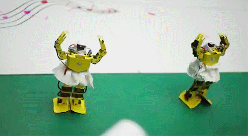 Teams competed in the two categories separated by dancing and technology, operating their yellow robots to perform proper actions. In the dancing category, teams improved the robots provided by the contest organizer before putting them onto the game field. The robots stood upside down, did the splits, rolled around and executed push-ups to a rhythm of fast tempo music.
