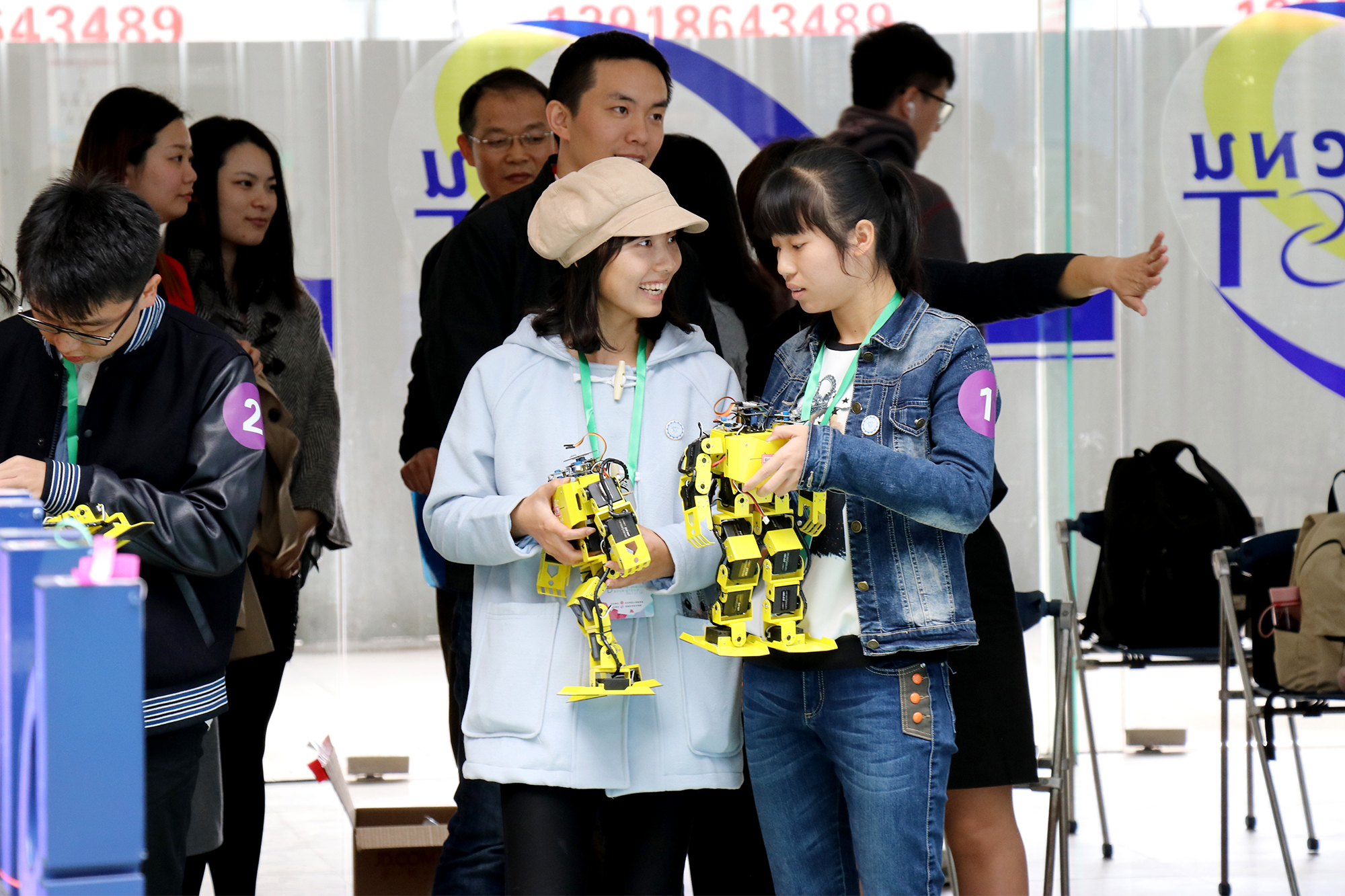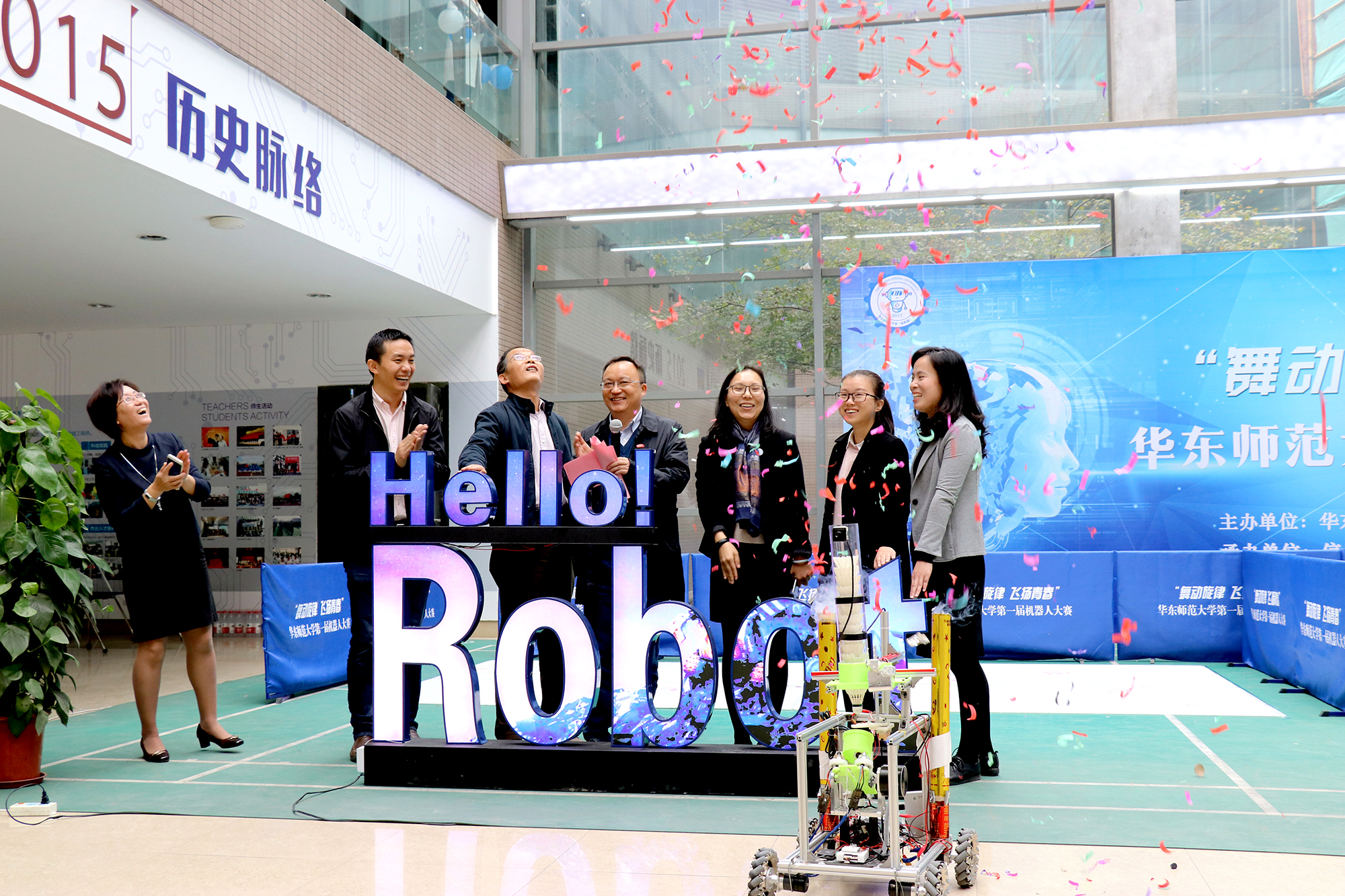Following the speech, Lei joined other university officials to ignite the “Hello Robot” lamp. Next, signaled by a badminton launcher, ribbons and salvo were fired into the air for the beginning of the contest.