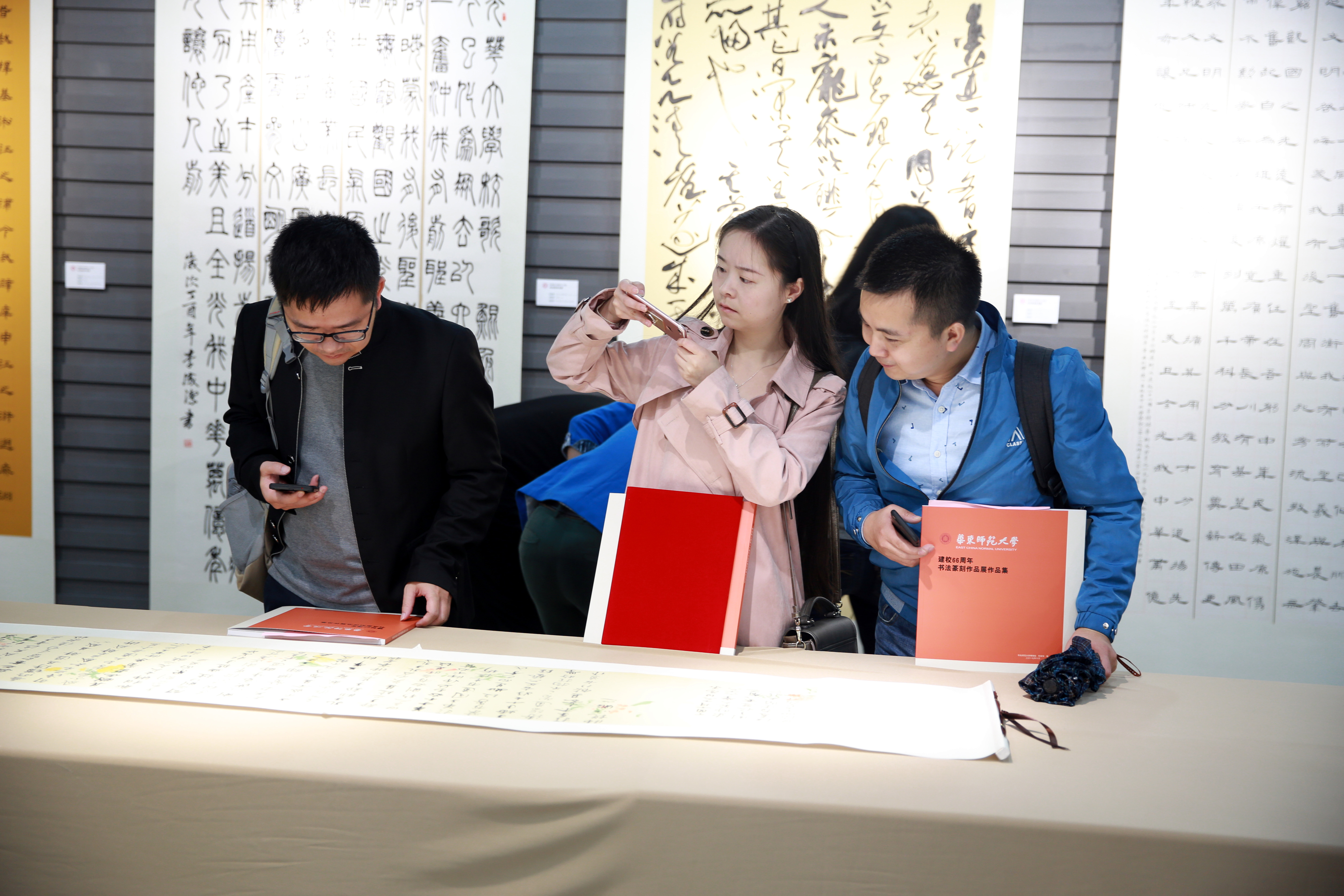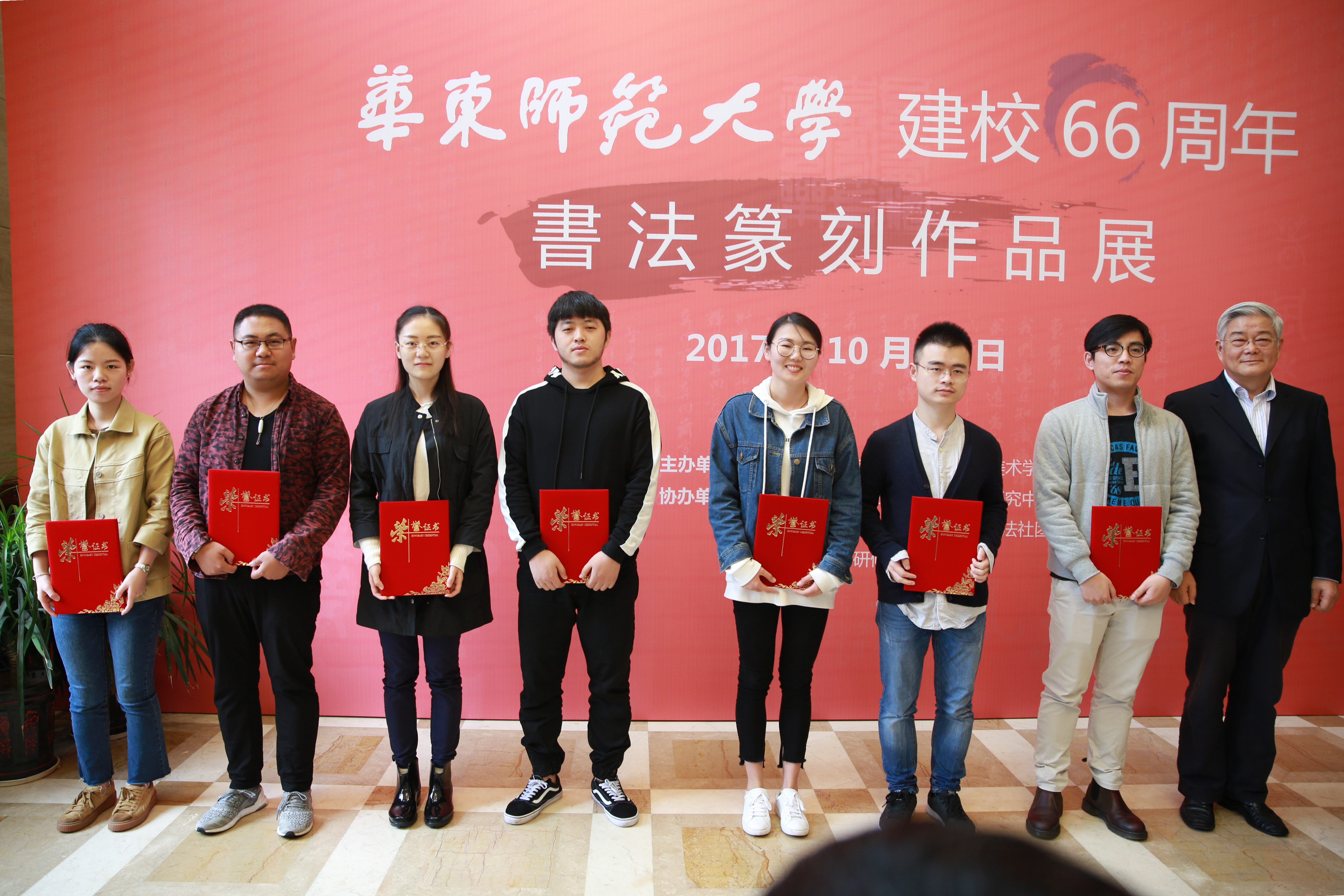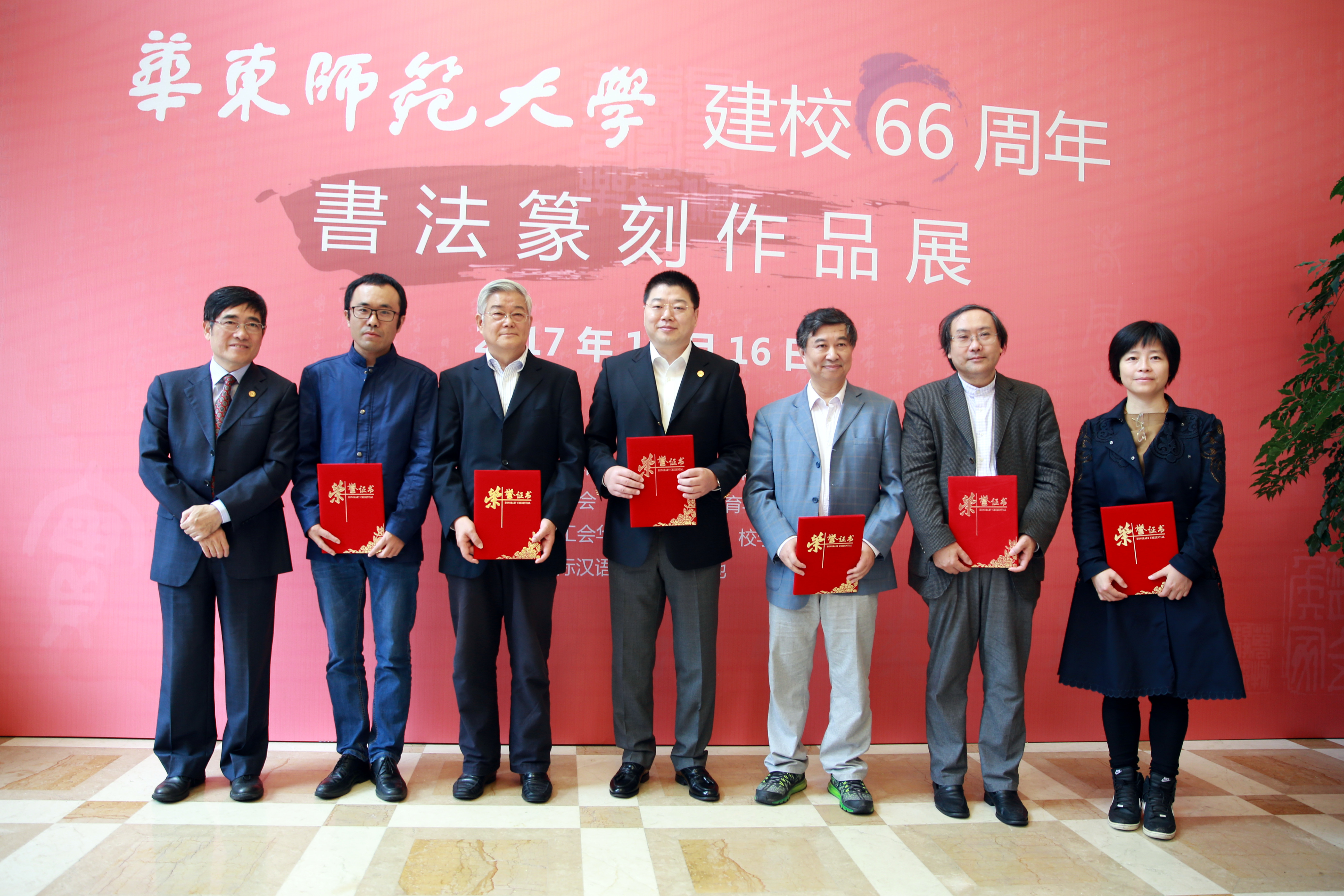 To celebrate the 66th anniversary of the founding of ECNU, an exhibition of calligraphy and seal cutting was held at the Global Center for Teaching Chinese to Speakers of Other Languages on October 16.