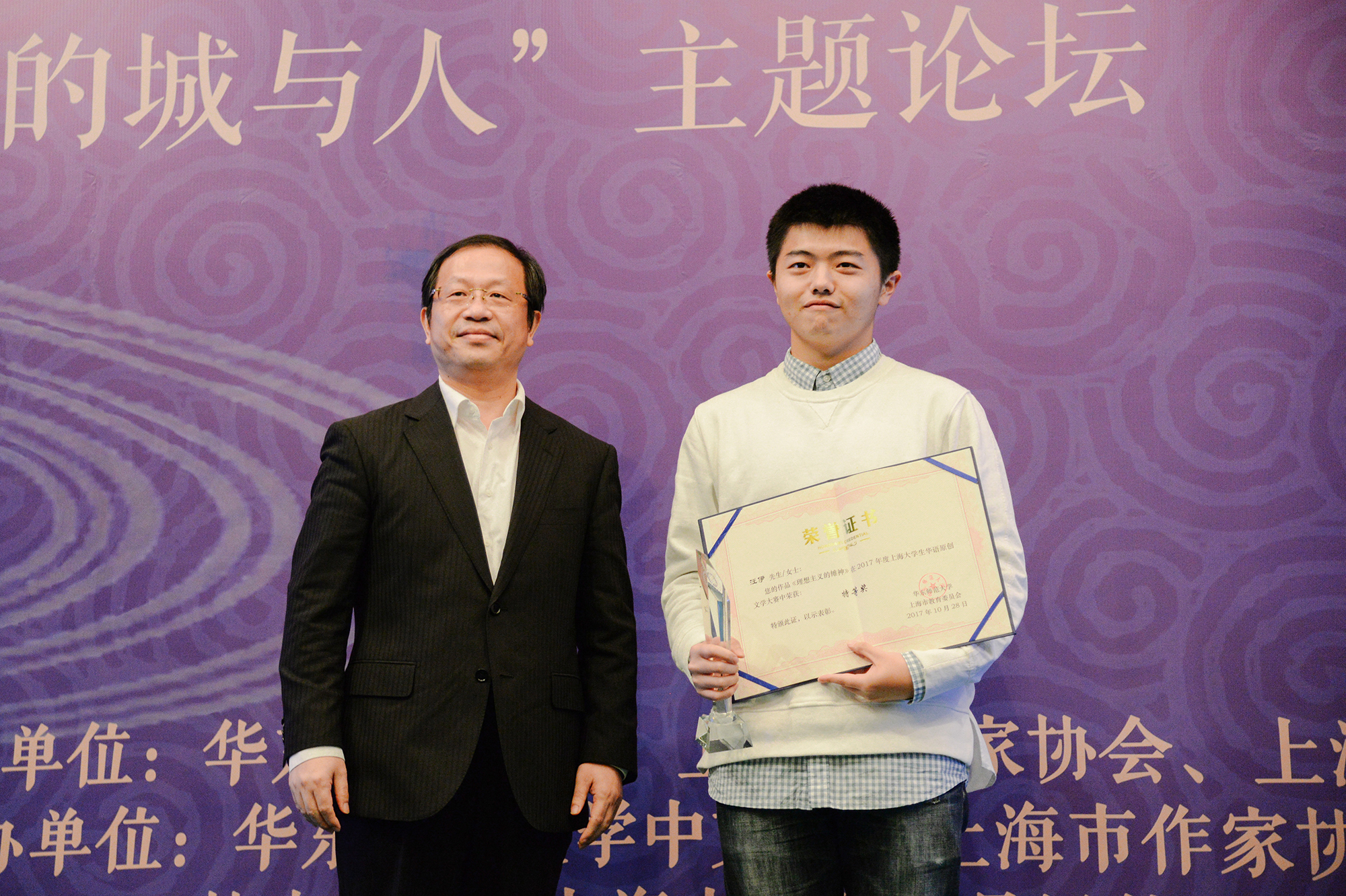 ON October 28, the award ceremony for the 9th “Literature and People” Chinese-language Original Literature Competition was held to acknowledge the distinguished writers of the 2017 Shanghai College Chinese-language Original Literature Competition & Forum on City and People in Literature.