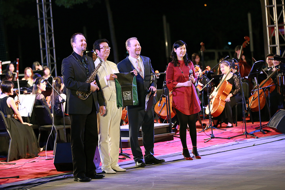 Teachers, students, and nearby residents enjoyed an extravagant night of beautiful melodies and harmonies at the May Plaza Concert held at the square in front of the library at Minhang campus on May 25.