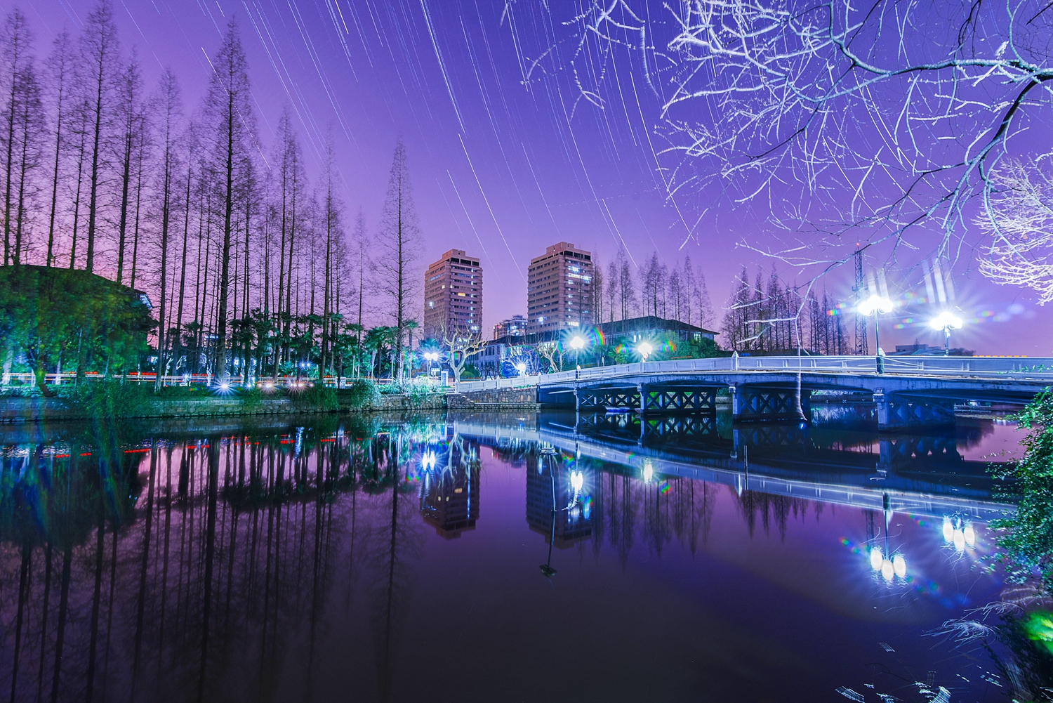 Pan Chenhua, a Ph. D candidate at ECNU‘s School of Life Sciences, said that the answers to these questions are yes. Over the course of one year, he took a series of photos of the sky, dotted with several cylces of star-constellation structures over the beautiful ECNU campus. He recorded all of the ravishing sceneries of the distant sky, displaying its unique constellations which vary at different times and over different areas of the stratosphere.