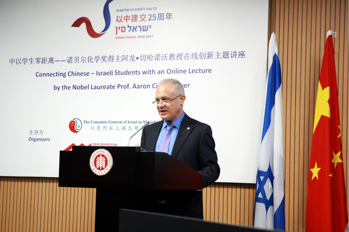 On May 23, Aaron Ciechanover, an Israeli biochemist and winner of the 2004 Nobel Prize in Chemistry, revealed some of the secrets to why Israel has become a leading nation for innovation and technology during an overseas Internet lecture for 50 Chinese and Israeli students.