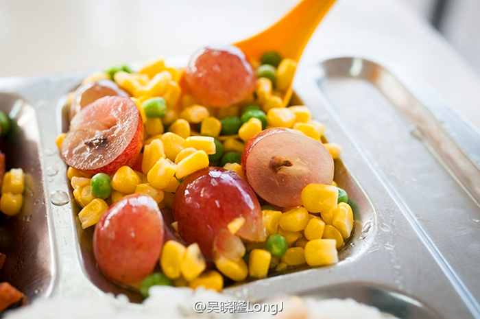 He became well-known by his first signature dish in September 2013 - a kind of cuisine that takes corn and grapes then fries them together for a sweet, sour, and crunchy flavor. The new dish was immediately a hit once it became a selection on the campus menu. The recipe even attracted other restaurants and chefs from outside of the campus. “It was hot then and many students lost their appetite,” Chef Liu said. “So I came up with an idea to make some mild dishes with vegetables and fruits.” Chef Liu’s awareness of the students’ appetites during seasonal changes was certainly a breakthrough for his creative ideas in dish selection.