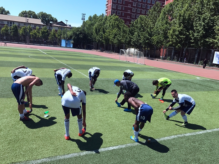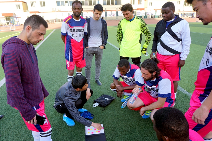 The ECNU team was hastily put together one and half months before the beginning of the tournament, so it only consisted of 11 players from 10 countries, yet in the qualifier match against the team from Beijing Normal University, Dragonetti Carlo, a forward of the ECNU team, scored off a header to secure a 1-0 victory over the host-team. In the most dramatic and unfortunate fashion, however, he suffered torn ligaments in the match and was inactive for the remainder of the tournament. Coach Liu Yu was forced to make necessary tactical adjustments for the squad, although the setback of Carlo’s injury, didn’t stop them from a head-on win streak to flawless victory.