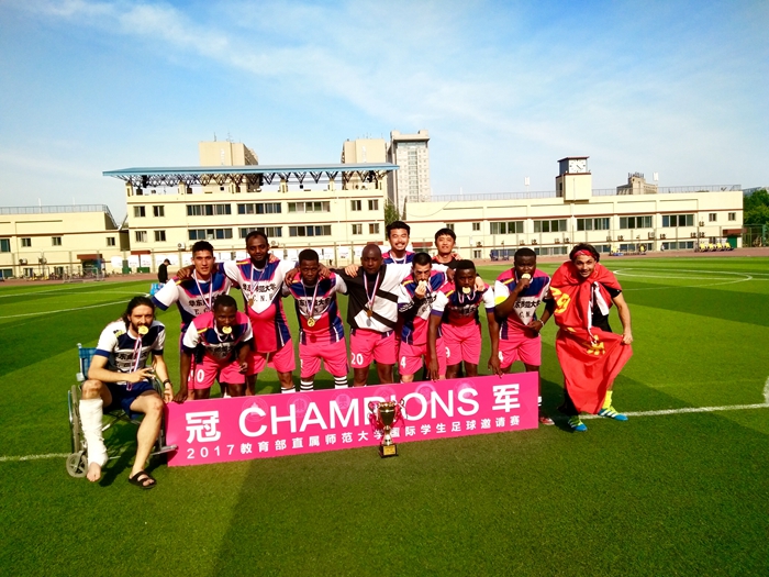 ECNU’s International Students Football Team ousted 5 other squads to take the champion of 2017 Normal Universities International Student Football Competition on May 7. The international football tournament, hosted by the Ministry of Education at Beijing Normal University, composed of 11 teams from six universities - Beijing Normal University, East China Normal University (ECNU), Central China Normal University, Northeast Normal University, Shaanxi Normal University and Southwest University - of which competed for the title in a series of eight matches. The teams organized a total of 60 students from 35 countries.
