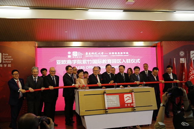 Among the guests' were Zhang Endi, vice chairman of Shanghai's top advisory body; Xu Tao, director of the Department of International Exchange & Cooperation of the Ministry of Education; ECNU president Chen Qun; Guo Weilu, vice director of Shanghai Education Commission; Yang Demei, vice head of Minhang District; Shen Wen, chairman and general manager of Zizhu High-tech Industrial Development Zone; Huang Zhen, vice president of Shanghai Jiao Tong University; Gao Wei, assistant president of ECNU; Axel Cruau, French consul general in Shanghai; Bruno Bonnell, board chairman of AEBS; Bernard Belletante, principal of AEBS;Candice du Chayla, president of Nouvel Institut Franco Chinois.