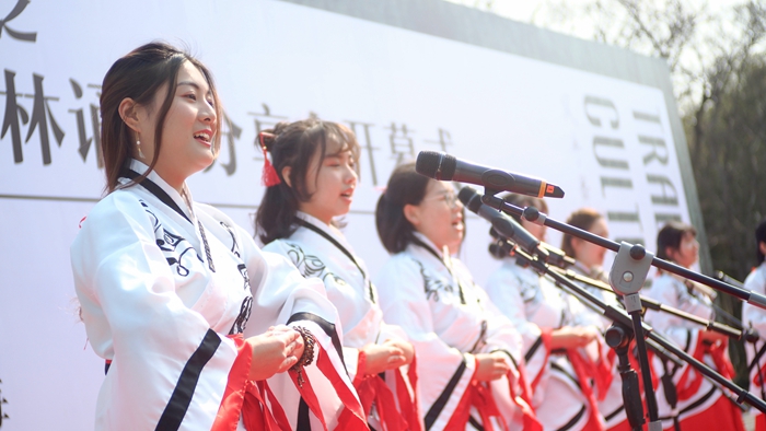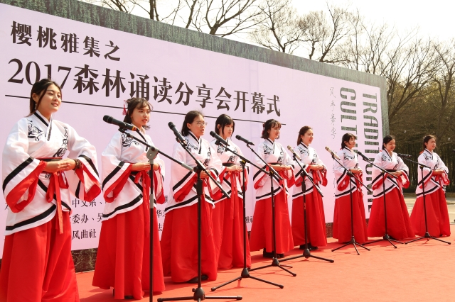 Students with the Department of Chinese Language and Literature of ECNU chants “In the Center of Water”, a song of the Classic of Poetry.