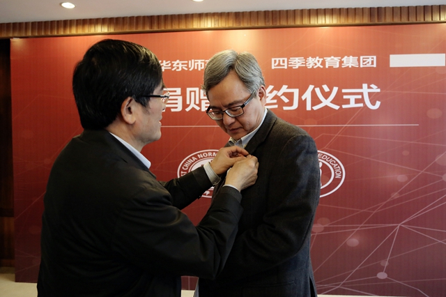 Its founder and chairman, Tian Peiqing, made the donation to Tong Shijun, university council chairman of ECNU at a ceremony on March 30.