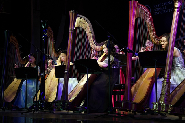 Harp and stringed instrument music dominated the first part of the concert while in the latter half, symphony “Gold and Silver Waltz”, played by the university's orchestra and conducted by Prof. Chang Lin, added to the festive mood to the upcoming Spring Festival with sprightly rhythm and rich melody.