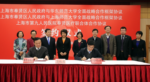 Officials present at the signing ceremony at the conference hall of the district government building included Shanghai Vice Mayor Weng Tiehui; Zong Ming, deputy general-secretary of the Shanghai Municipal Government; Su Ming and Jia Wei, director and vice director of the city’s education commission; Fengxian Party chief Zhuang Mudi and head of the district Hua Yuan; and ECNU leaders Tong Shijun, Sun Zhenrong and Mei Bing. Ni Minjing, vice head of Fengxian District, officiated at the ceremony.