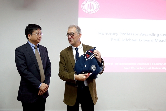 Michael Meadows, a heavyweight in geographical sciences in South Africa, accepted an Honorary Professorship from ECNU President Chen Qun at a ceremony in the Minhang campus on December 5.